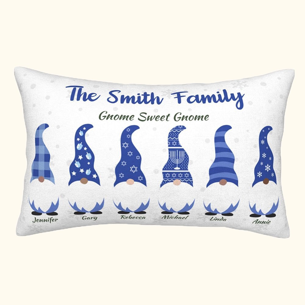 Personalised Cute Hanukkah Gnome Family Throw Pillow Cover with 1-8 Names Happy Hanukkah Gift for Jewish Family
