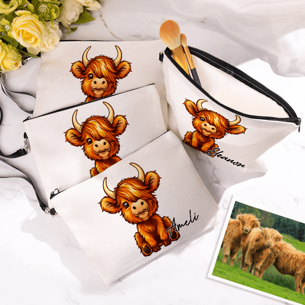 Featuring the adorable Highland cow as its core element, paired with a personalized name, this gift cleverly blends the charming Highland cow image with a customized touch. It's both a unique personal organizer and a thoughtful keepsake.