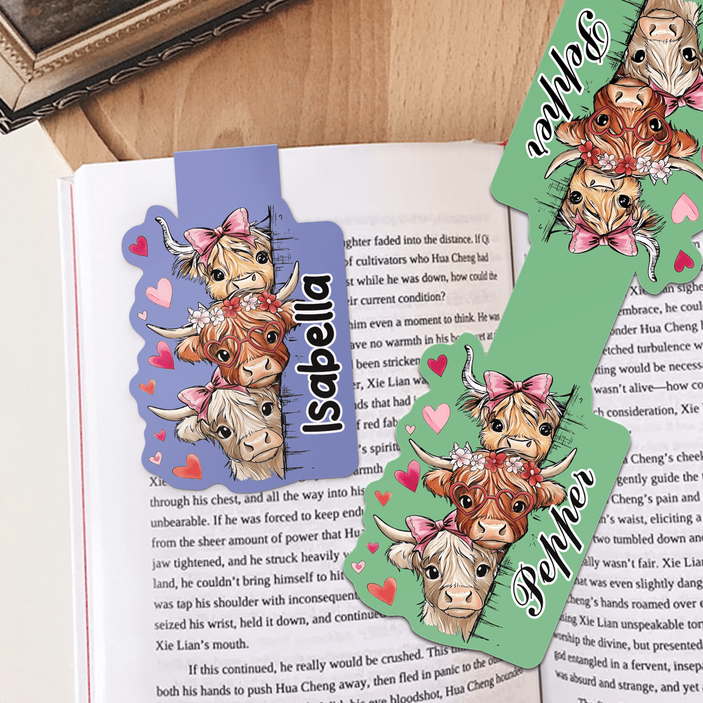 Personalized Cute Highland Cow Magnetic Bookmark Clip with Name Daily Use Birthday Gift for Bookworms