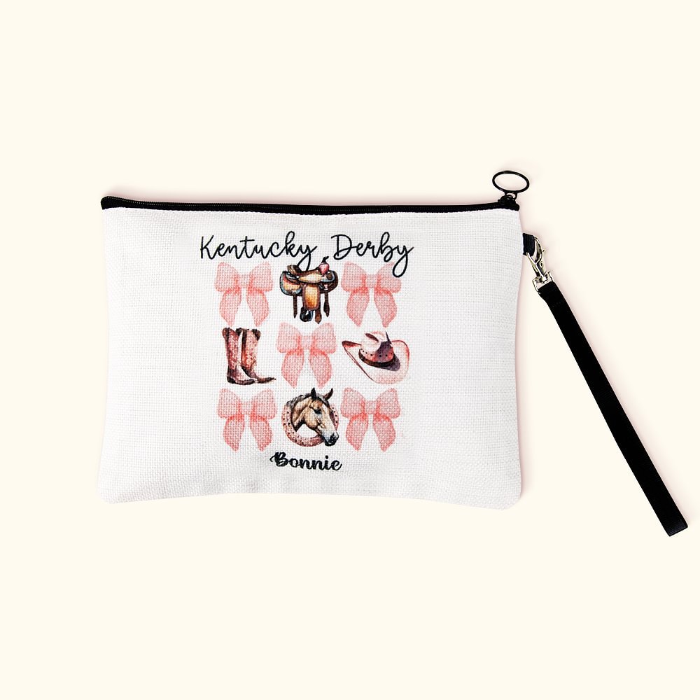 This cosmetic bag has an exquisite and charming design, inspired by the Kentucky Derby Horse Festival and fused with classic bow elements, to design a cosmetic bag full of fashion and elegance, showing feminine charm and personality. There are four designs to choose from. In addition, you can also customize your name on the bag for a truly unique and one-of-a-kind accessory.