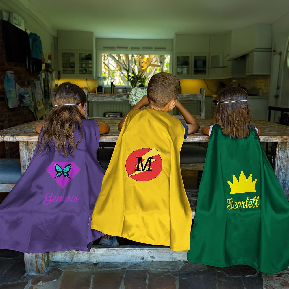 Let your child’s superhero dreams come true with this Personalized cape, available in various fun designs like butterfly, heart, lightning, star, and more. Customize the cape with your child's name or an initial to create a unique accessory that will make them feel special.