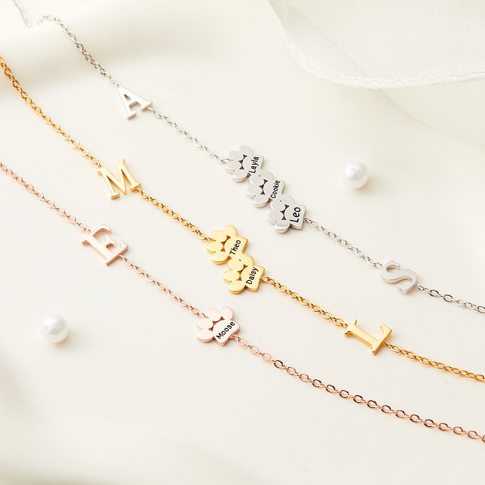 This necklace can be Personalized with 1-3 names, allowing you to include the names of your furry friends. Each name is delicately engraved on a cute paw design, creating a unique and Personalized piece.