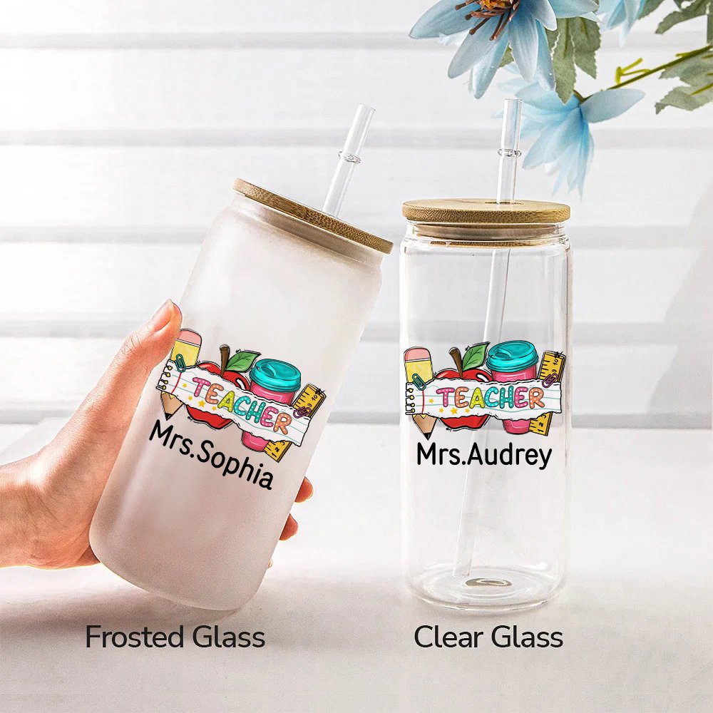 The glass incorporates elements such as an apple, pencil, ruler, and tumbler, making the design of the glass stylish and cute. You can also print the teacher's name on the glass to make it more unique.