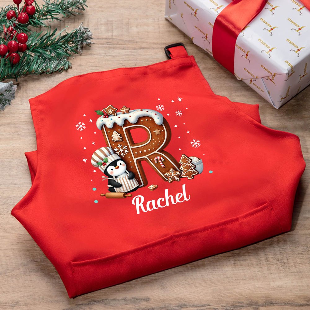 Centreed around Christmas-themed cartoon Biscuit letters and penguin patterns, this design features customizable names, creating an overall style brimming with the warmth and whimsy of the holiday season. The Biscuit letters and penguin shapes align with the Christmas atmosphere, featuring bright and lively colours. The name customization gives the apron a unique identifier, allowing children to express their individuality while immersing themselves in the joy of the holiday, making it a charming highlight in family activities.