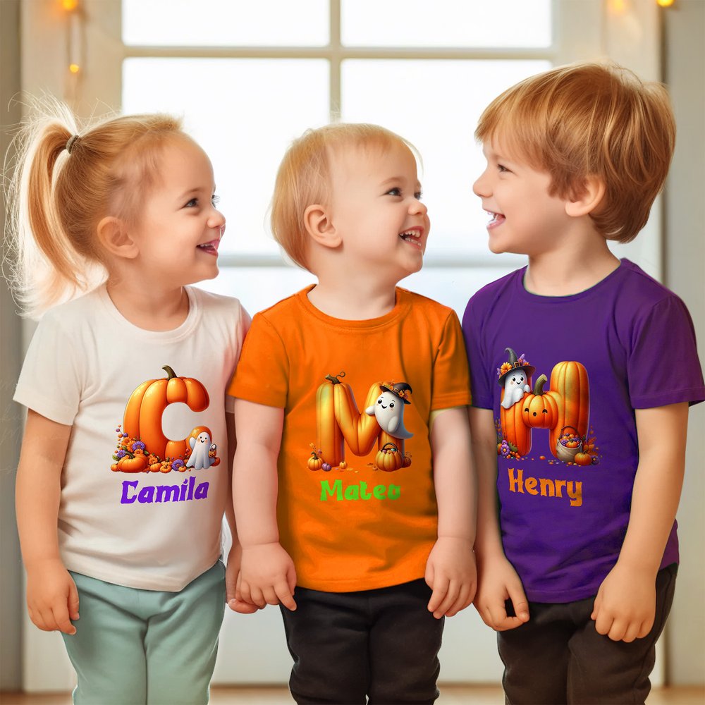 The T-shirt and baby bodysuit are adorned with charming pumpkin letters and the phrase "My First Halloween," encapsulating the warmth of the holiday spirit. You can personalize the outfit with your child's name, transforming it from just clothing into a cherished keepsake that captures the joy and growth of your little one.