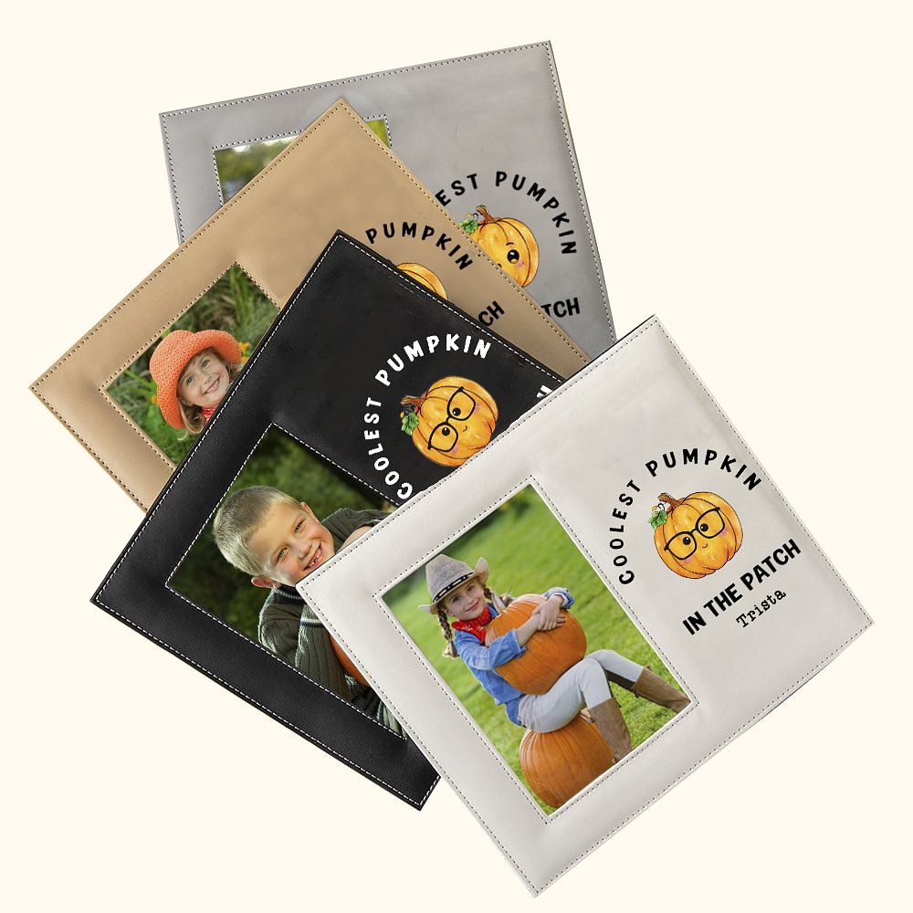 Feast your eyes on this beautiful frame, featuring an eye-catching pumpkin design in three styles: the cutest, coolest, and sweetest. The leather texture and warm pumpkin tones create an indescribable delicate and playful collision, adding to its irresistible charm.