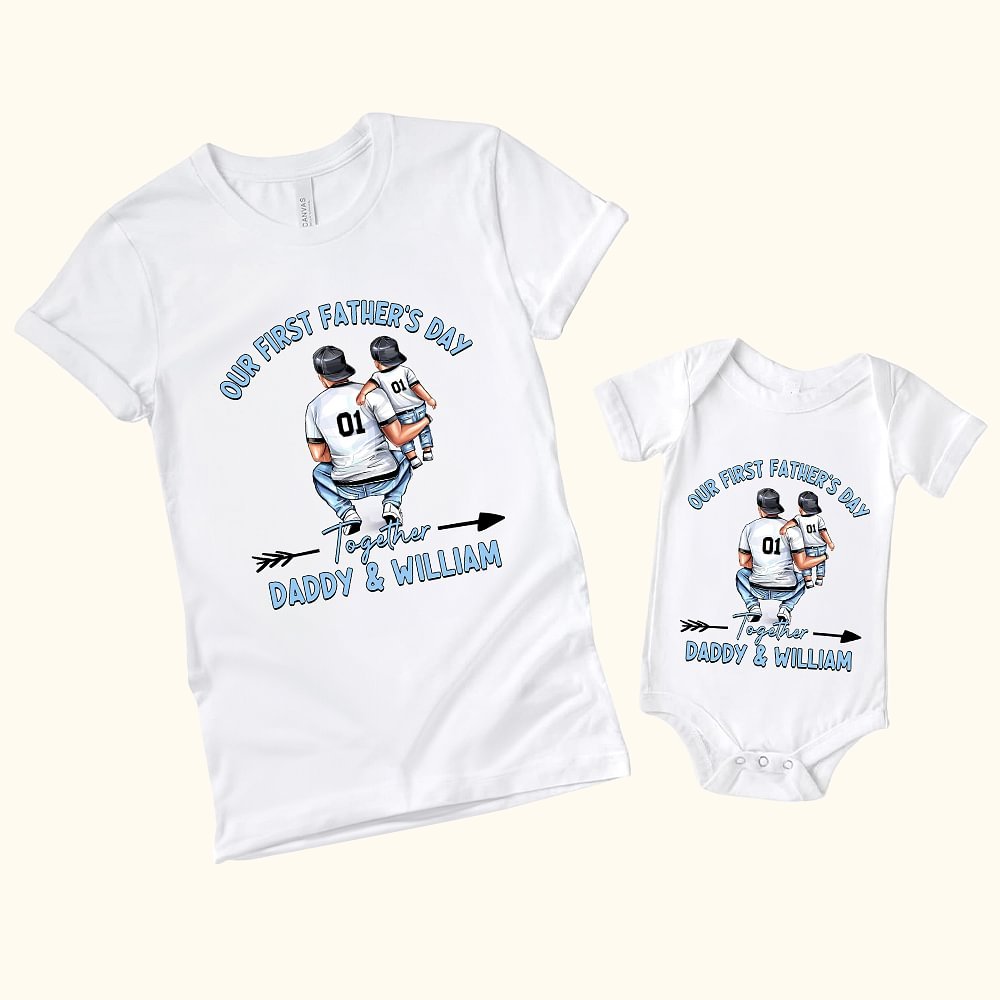 This baby-father matching set is printed with the warm "Our first Father's Day Together" words, symbolizing the inseparable relationship between father and baby and showing warm parent-child time. The clothing is beautifully depicted through the image of a father holding his child in his hands. It symbolizes the unbreakable bond and the joy of being a dad.
