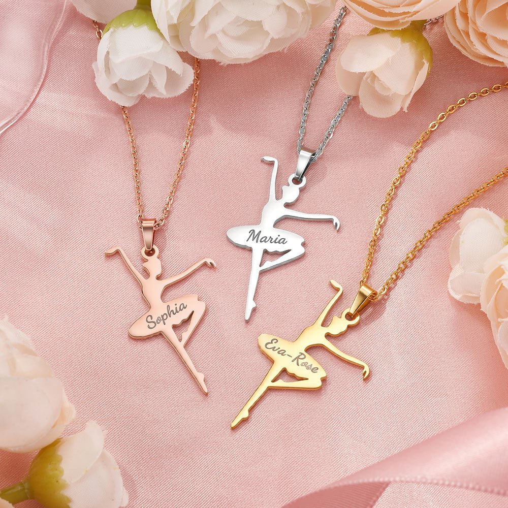 The design of this necklace is unique, capturing the light and graceful posture of a ballerina on the pendant, showing the dancer's graceful lines and dynamic beauty. You can also customize your name on the necklace, making each necklace unique, full of personal characteristics and commemorative value.