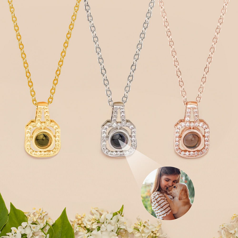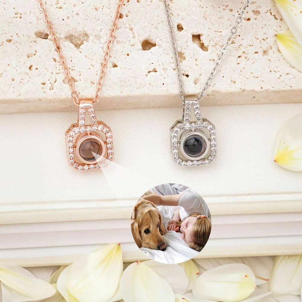 This necklace adopts a simple square design, with zircon, which can highlight the softness and gentleness of the wearer. The necklace can also be customized with projection photos to add mystery and fashion.