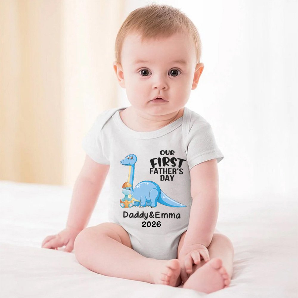 Father's Day is right around the corner, and what better way to celebrate than with a special gift for a new dad? Our personalized cotton t-shirt is the perfect way to show your husband how much you care. The unique design features a cute dinosaur print and can be customized with both of your names on it. This means that no matter where he goes, he can proudly show off his love for his family!