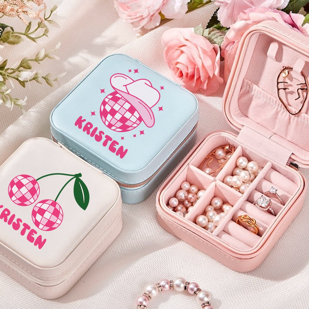 Custom names for each bridesmaid on the travel jewellery case, Personalized travel jewellery organizer box will be the perfect wedding day surprise for your bridal party, ladies always travel with their jewellery and everything gets tangled and jumbled together, not anymore! This gorgeous storage box customized with different designs is also birthday gift, Christmas gift, maid of honor gift, thank you gift, travel gift, bachelorette party favors...