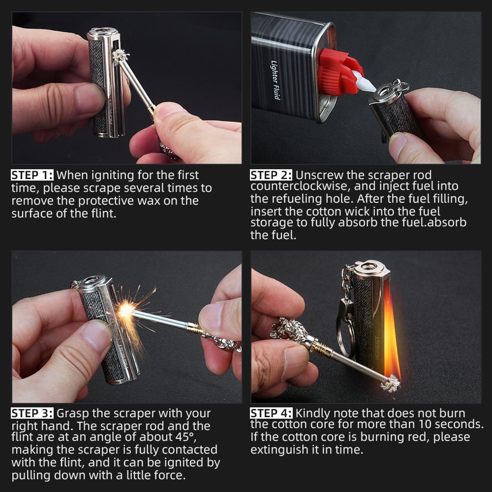 These metal lighter keychains are made of zinc alloy, which can be refilled and ignited at least 10,000 times, fall-proof, waterproof and windproof, durable to use, and suitable for home-based, mountaineering, hiking, and other outdoor activities.