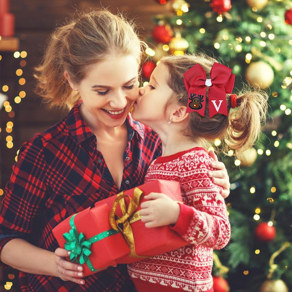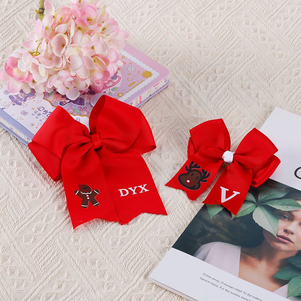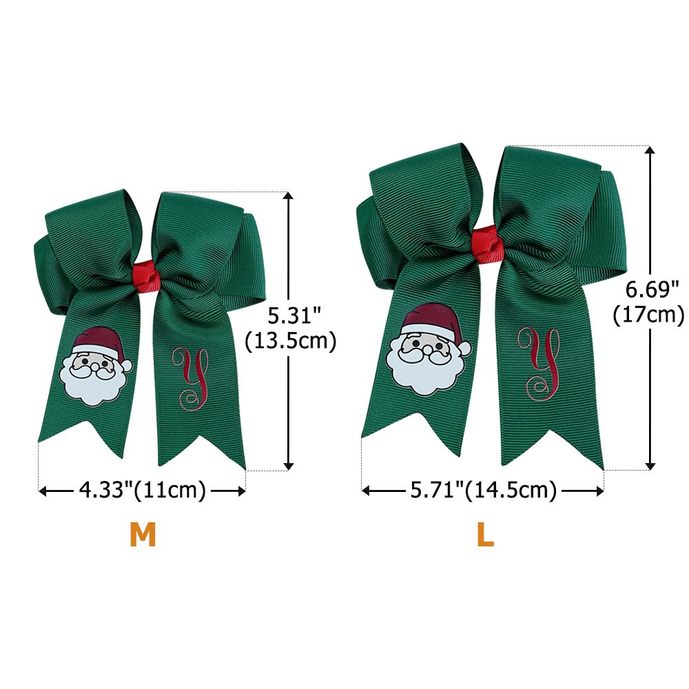 Each bow includes customizable letters or letter combinations, adding a personal touch to the festive design. The carefully integrated lettering complements the holiday elements while maintaining style. The personalization makes each bow a unique accessory for holiday wear.