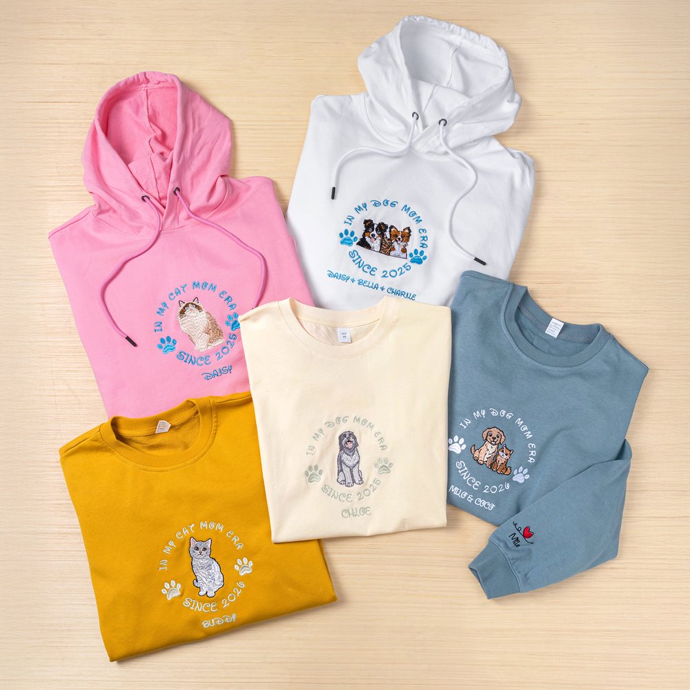 This clothing item features vividly detailed custom dog portraits along with personalized names, texts, and titles, showcasing the unique charm of your beloved pets. For example, the playful phrase "In My Dog Mom Era Since 2025" adds emotional depth while highlighting your pride as a dog mom. Each piece of clothing perfectly embodies your pet's personality, making it a fashionable connection between you and your furry friend.