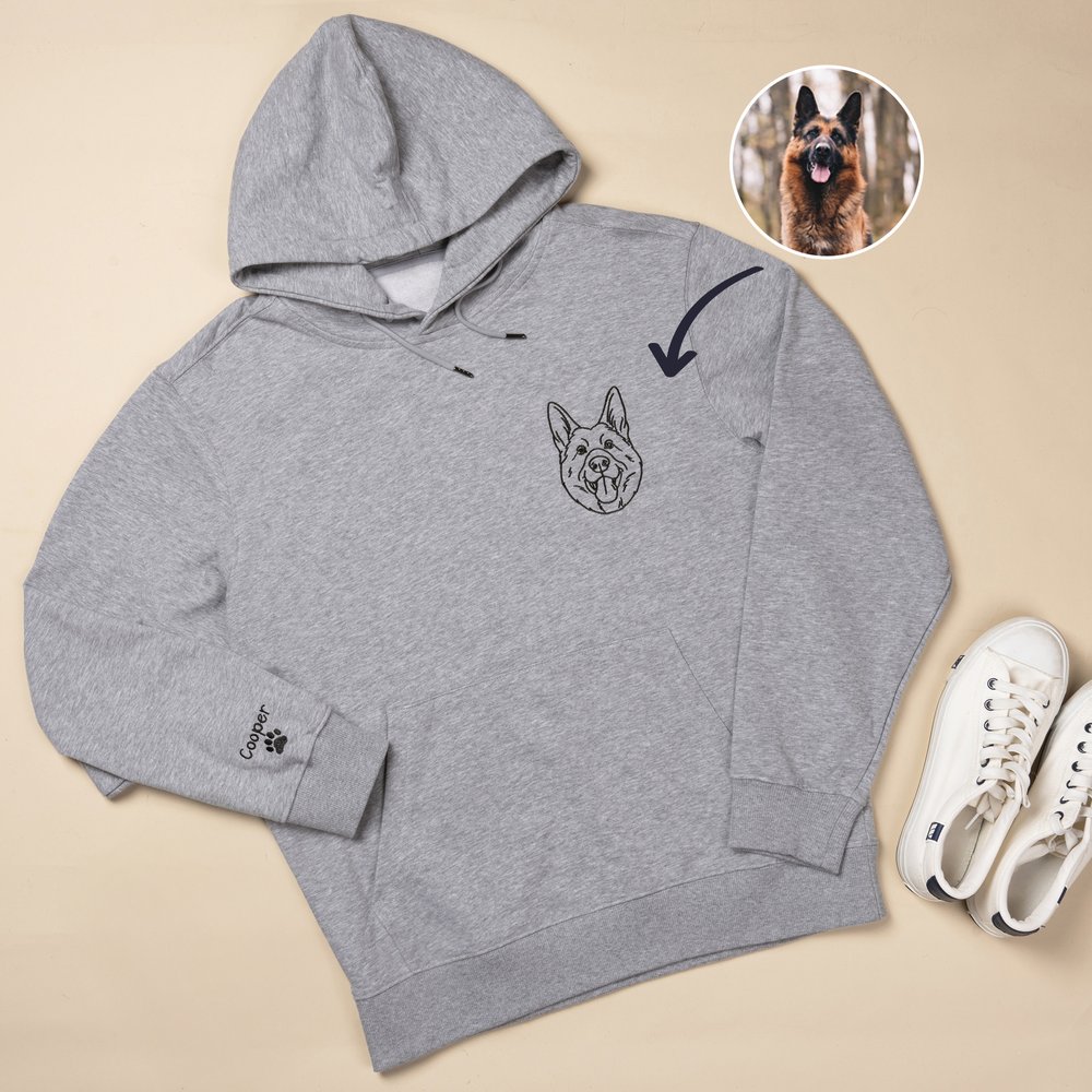 Upload a photo of 1-2 pets for custom embroidery, including your or your pet's name. Perfectly blend your furry friends' adorable looks with their unique touches. Whether it's a lively dog, a docile cat, or any other adorable pet, the delicate lines capture their lively expressions, creating a unique connection between you and your pet that showcases your cherishment and love for your furry companion.