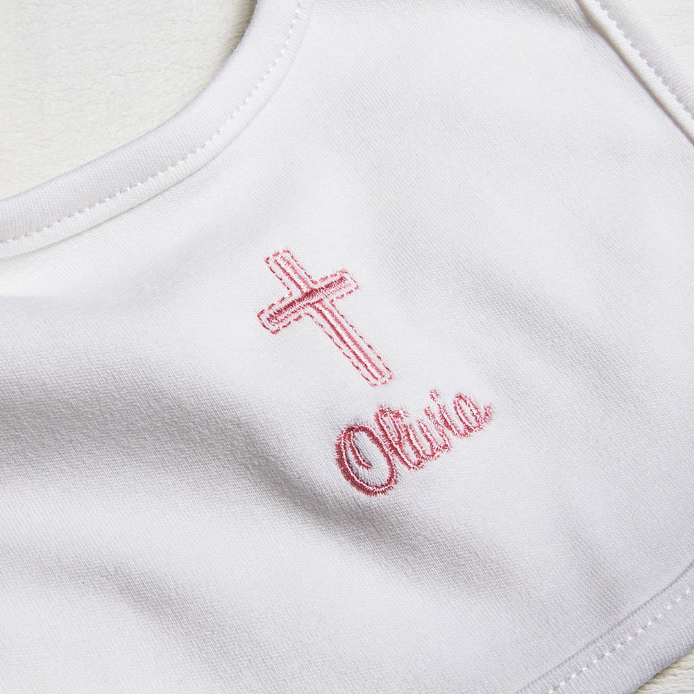 This bib features a simple and exquisite embroidered cross pattern. There are 8 cross patterns and 4 fonts to choose from. You can also customize your name, which contains the deepest blessings and protection for the newborn baby.