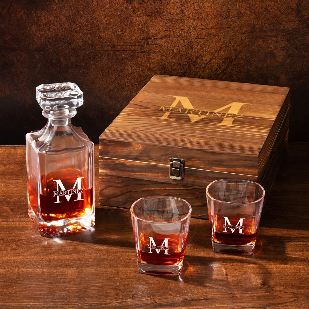 This whisky decanter is designed with a "retro texture+exclusive customization" as its core, breaking away from the monotony of conventional solid colour glass, are carved with text in the centre, highlighting an elegant style and making the exclusive logo not abrupt, with multiple designs for you to choose from.