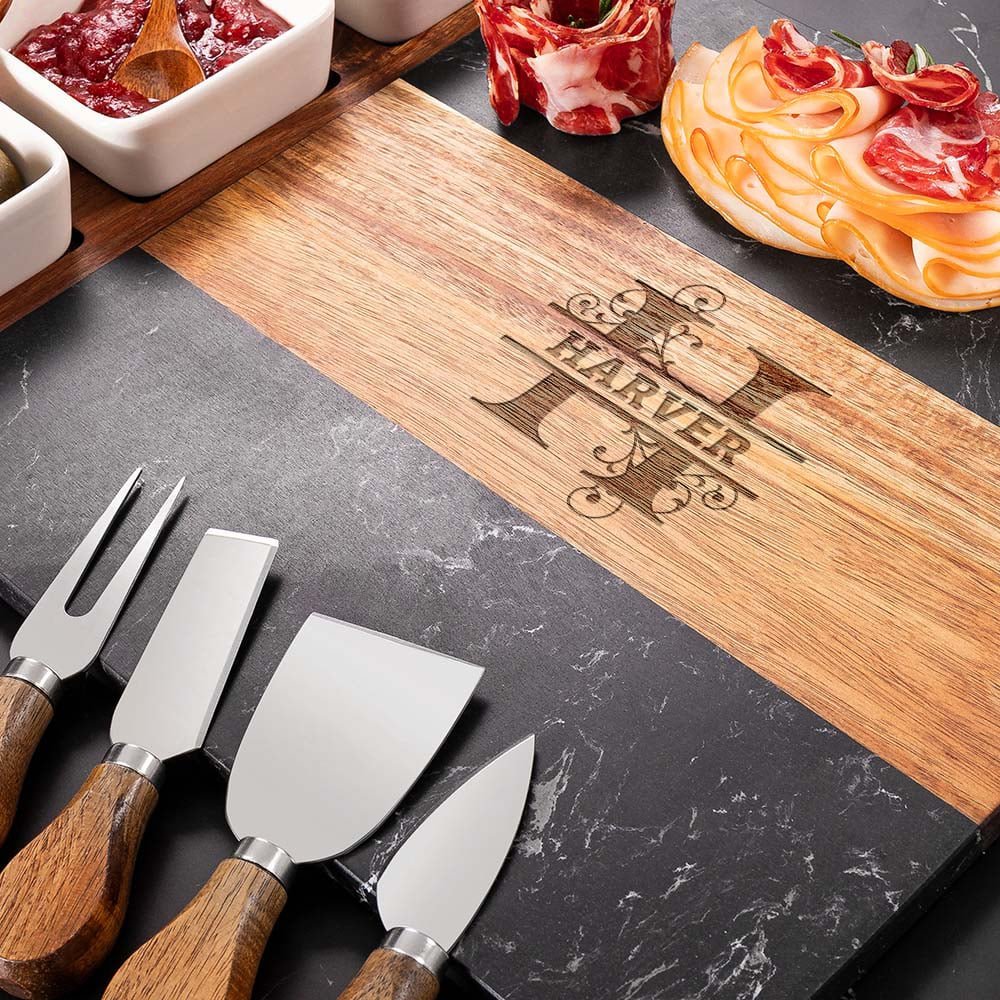 This 11-piece marble board set helps you create an elegant charcuterie spread with ease. It includes three ceramic bowls for dips and sides, three wooden spoons, and a set of four specialized cheese knives. Whether serving cheeses, cold cuts, jams, or olives, this collection meets all your serving and pairing needs—making every step from preparation to enjoyment seamless and stylish.
