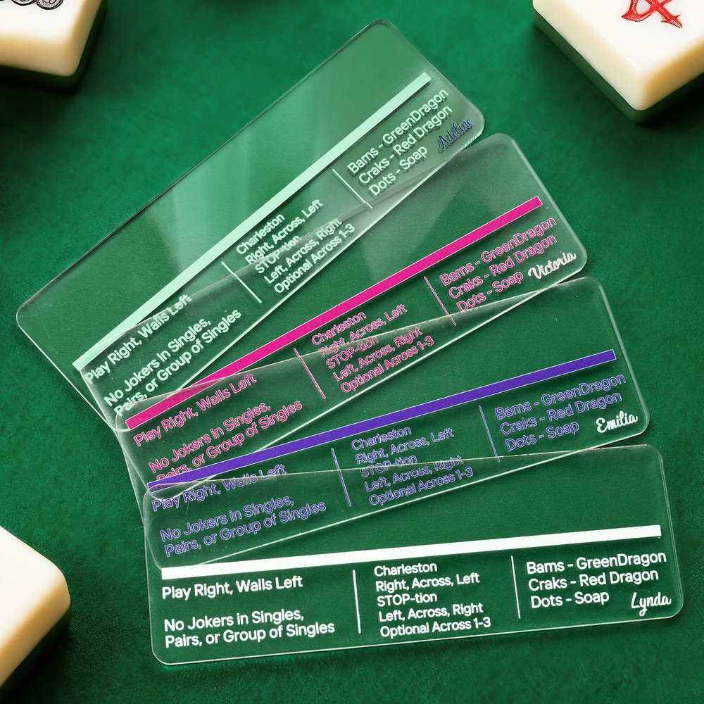 As a mahjong game accessory, this mahjong tile finder helps players quickly reference rule cards, while the handy tips on it boost in-game efficiency. Designed for large-sized mahjong tiles, it also fits standard sizes perfectly—making it a practical mahjong rule assistant. We also offer exclusive name customization, letting mahjong lovers showcase their passion for the game.