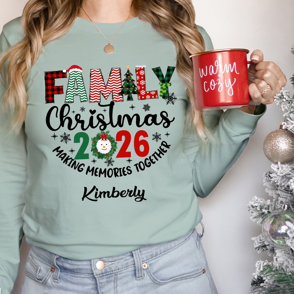 Designed with the essence of family bonding, our family Christmas clothing prints the heartwarming quote "Family Christmas 2026 Making Memories Together," reminding everyone of the importance of cherishing time spent with loved ones during this special occasion. Each item of clothing can be personalized with the names of your loved ones or a blessing, making it the ideal Christmas memento for every member of your family.