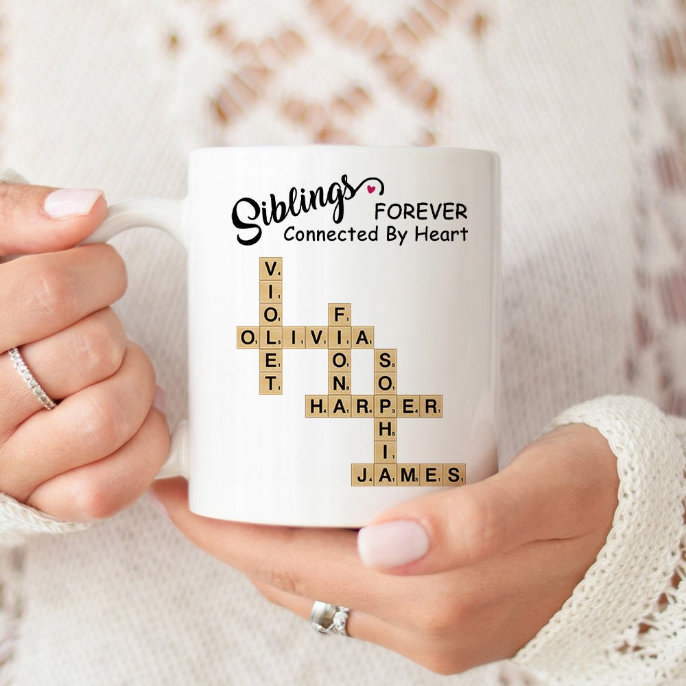 Inspired by crossword puzzles, this custom mug creatively arranges your family members' names into a visually playful and heartwarming design. The eye-catching quote"Family connected by heart forever" design celebrates your family's close connection in a one-of-a-kind way, perfect for expressing your love and care for family members.