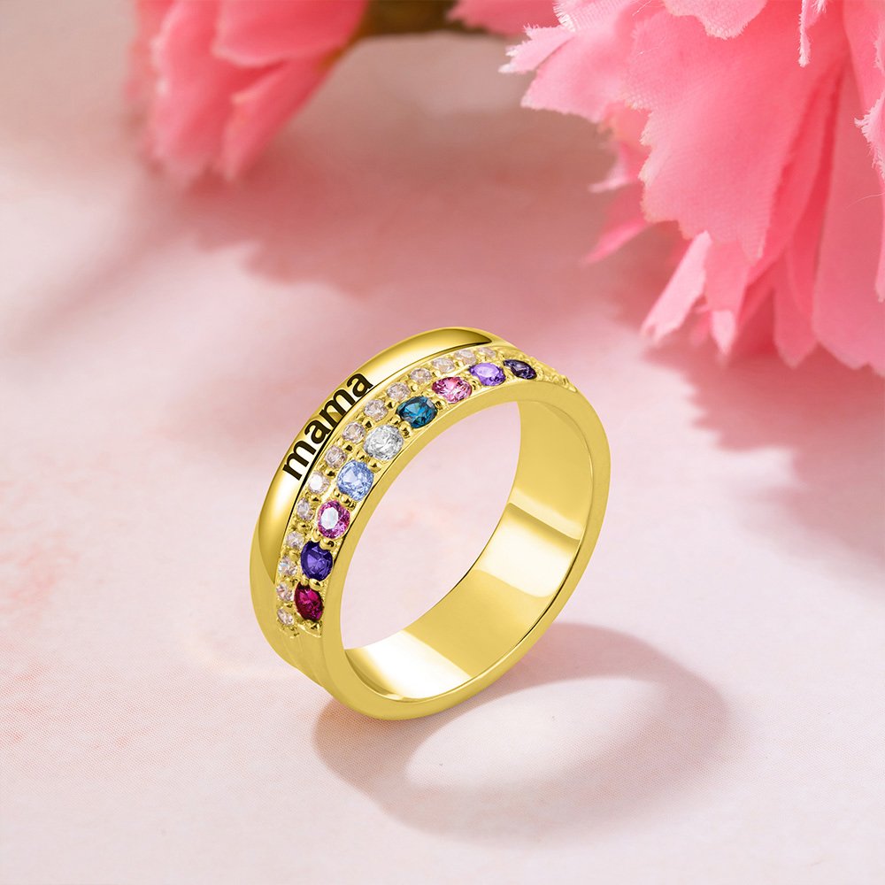 The family ring can be customized with multi birthstones and text, and you can choose the birthstone according to the months and stack it on the ring, making a one-of-a-kind jewellery gift.