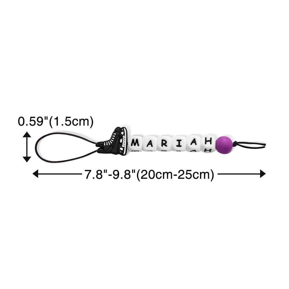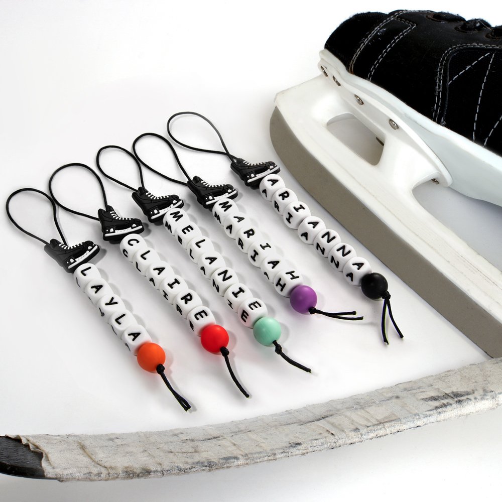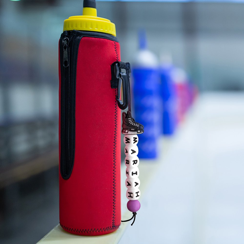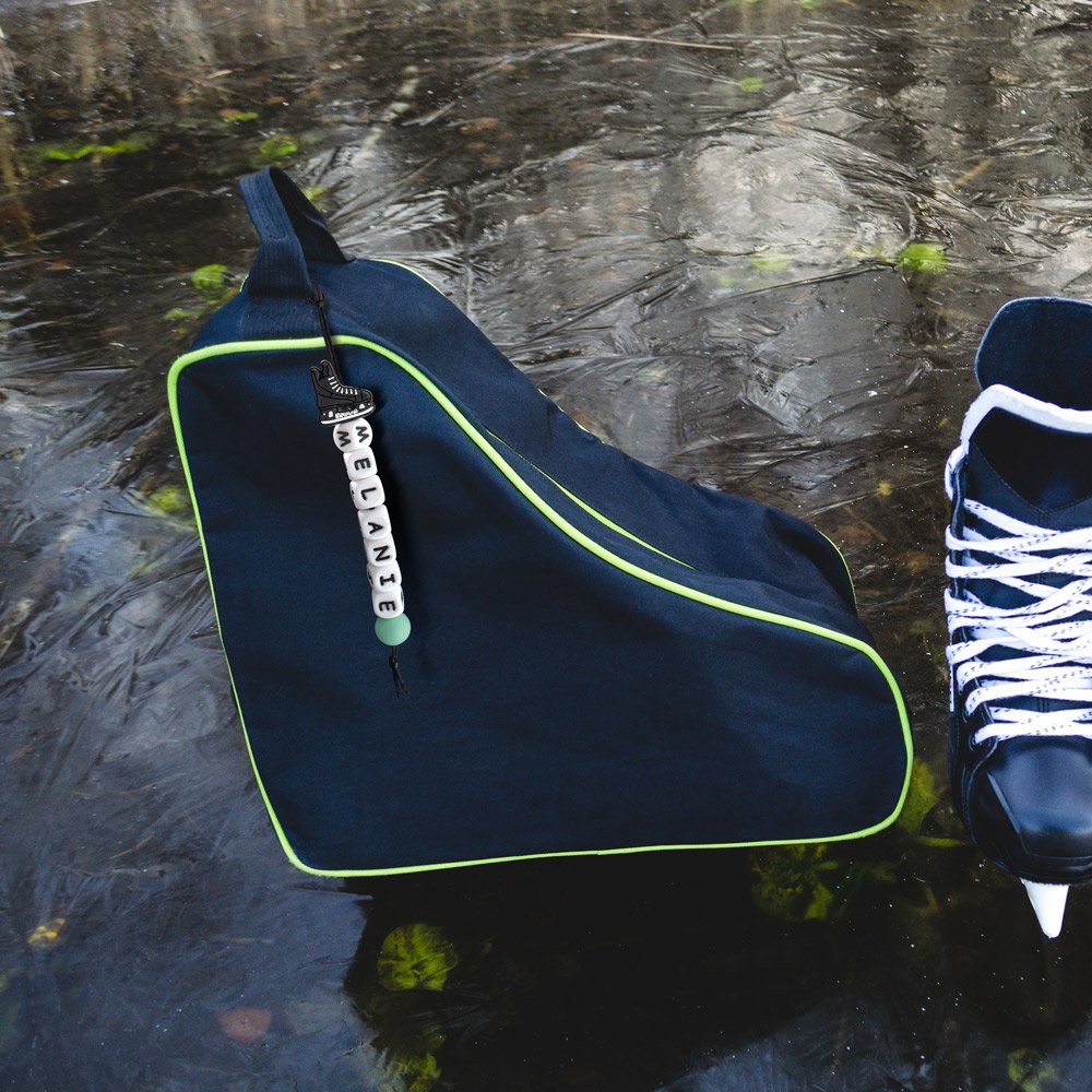 This bag tag of ours is designed to brighten up your sports gear and show off your sports personality. The first part of our tag is a field hockey shoe design, the middle section is made up of individual monogrammed silicone beads, we can customize the letters on each bead so that they join together to form your name, and the bottom of the label is a round silicone bead that is available in multiple colours, adding a touch of colour to the product itself. This personalization adds a sense of identity and makes it easier to find your gear among the many.