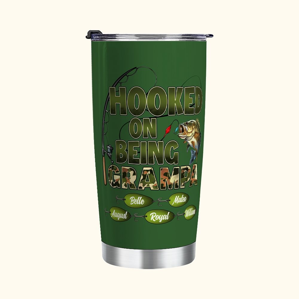 This tumbler is painted with realistic fish, fishing rod, and bait elements, and each bait can also be customized with a child's name. The tumbler is also printed with the words "Hooked on being", and you can design the title. This playful design shows the deep bond between the child and family members such as grandfather or father.