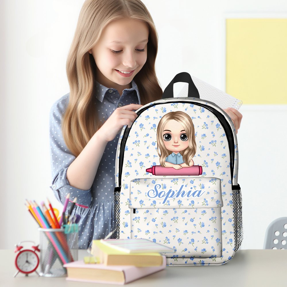 This backpack features crayon cartoon characters as the main decorative element, adding a playful touch. We offer two different background options: a solid color for a simple and stylish look, and a floral pattern for a fresh and cute style. Additionally, the backpack can be Personalised with a child's name, making each one unique and catering to their desire for customized items.