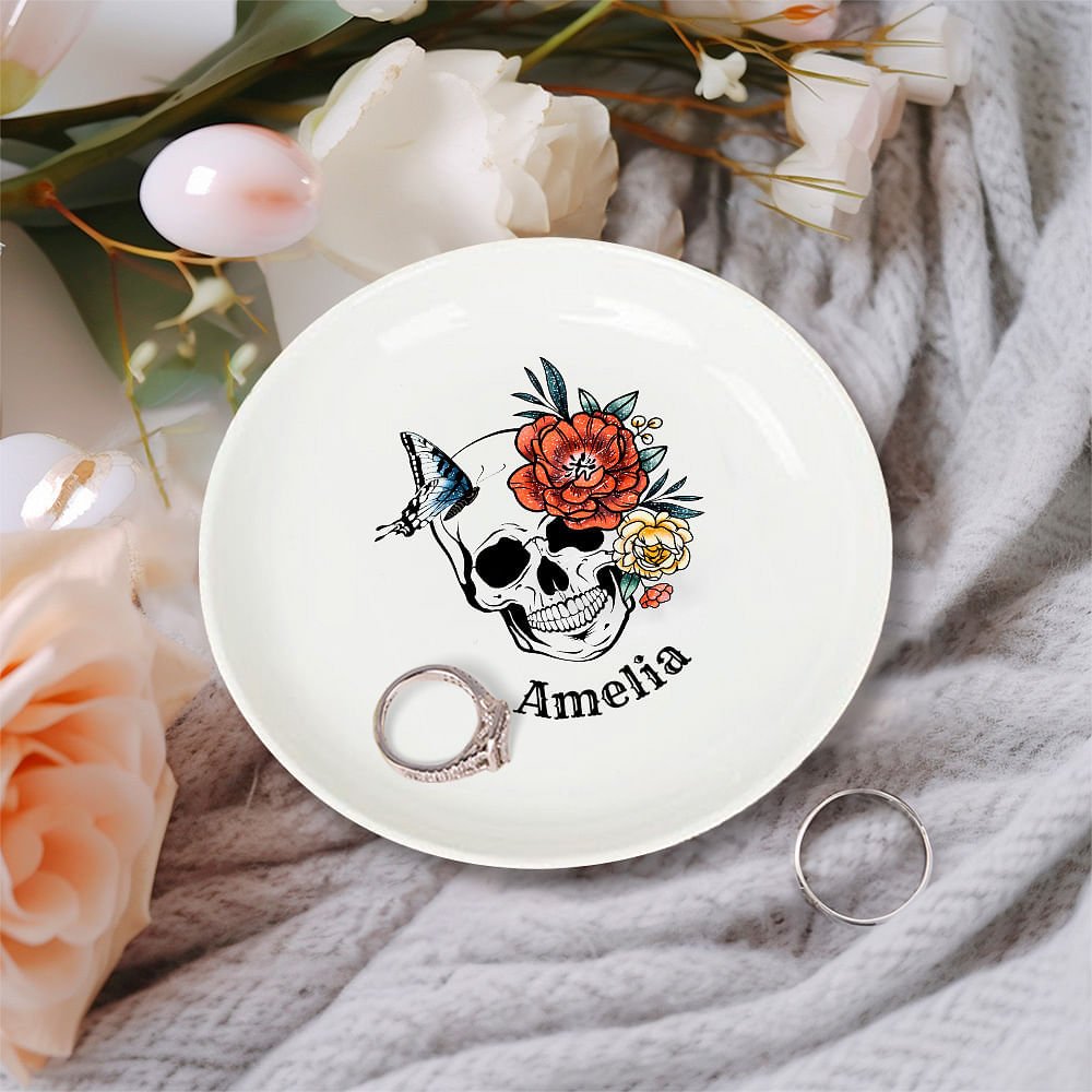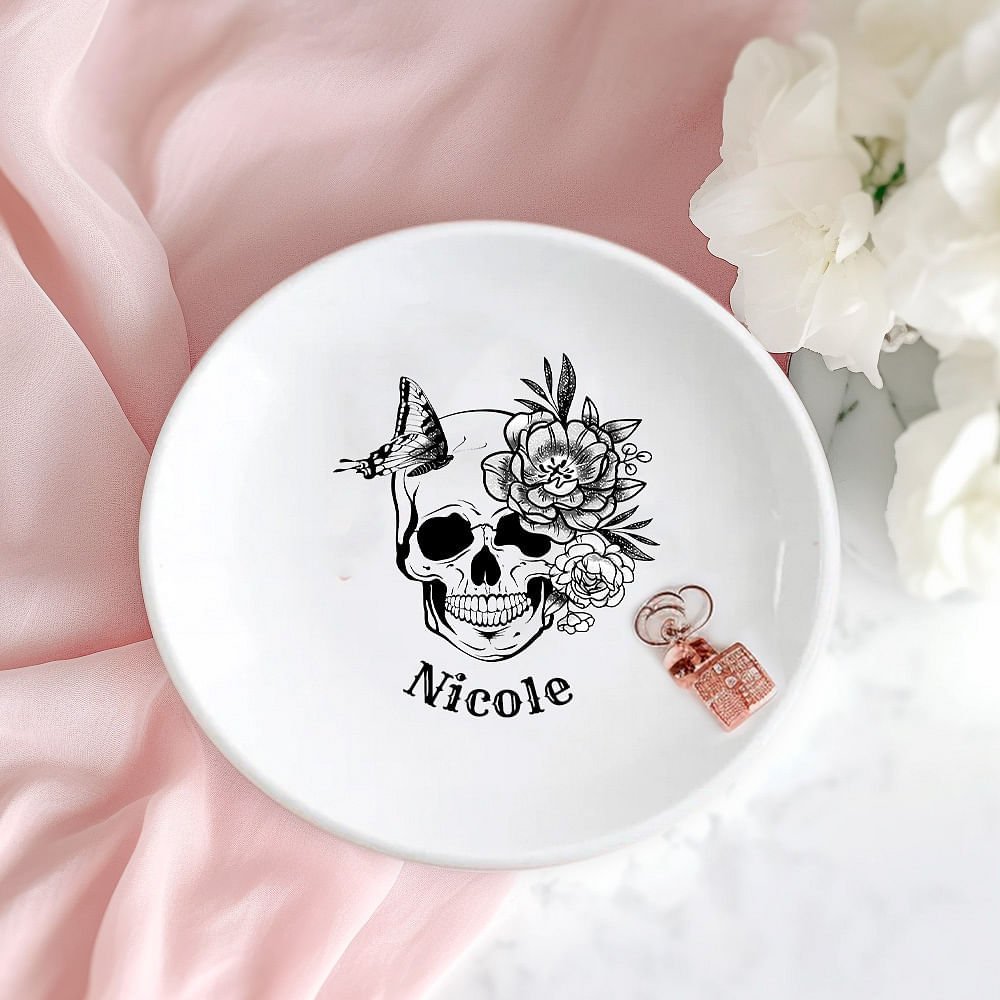Whether it is the Day of the Dead, Halloween, birthday, or wedding scene, this ceramic jewellery dish is your perfect choice for your female friends who love jewellery or gothic skull style.