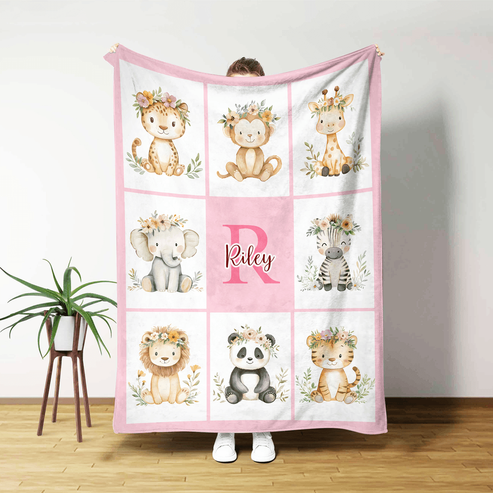 Featuring adorable animal designs adorned with tiny flower crowns, the fresh and playful style perfectly captures children's love for animals. Supports initial and name customization, transforming the blanket into a unique identifier for your child—satisfying visual aesthetics while enhancing their sense of belonging.