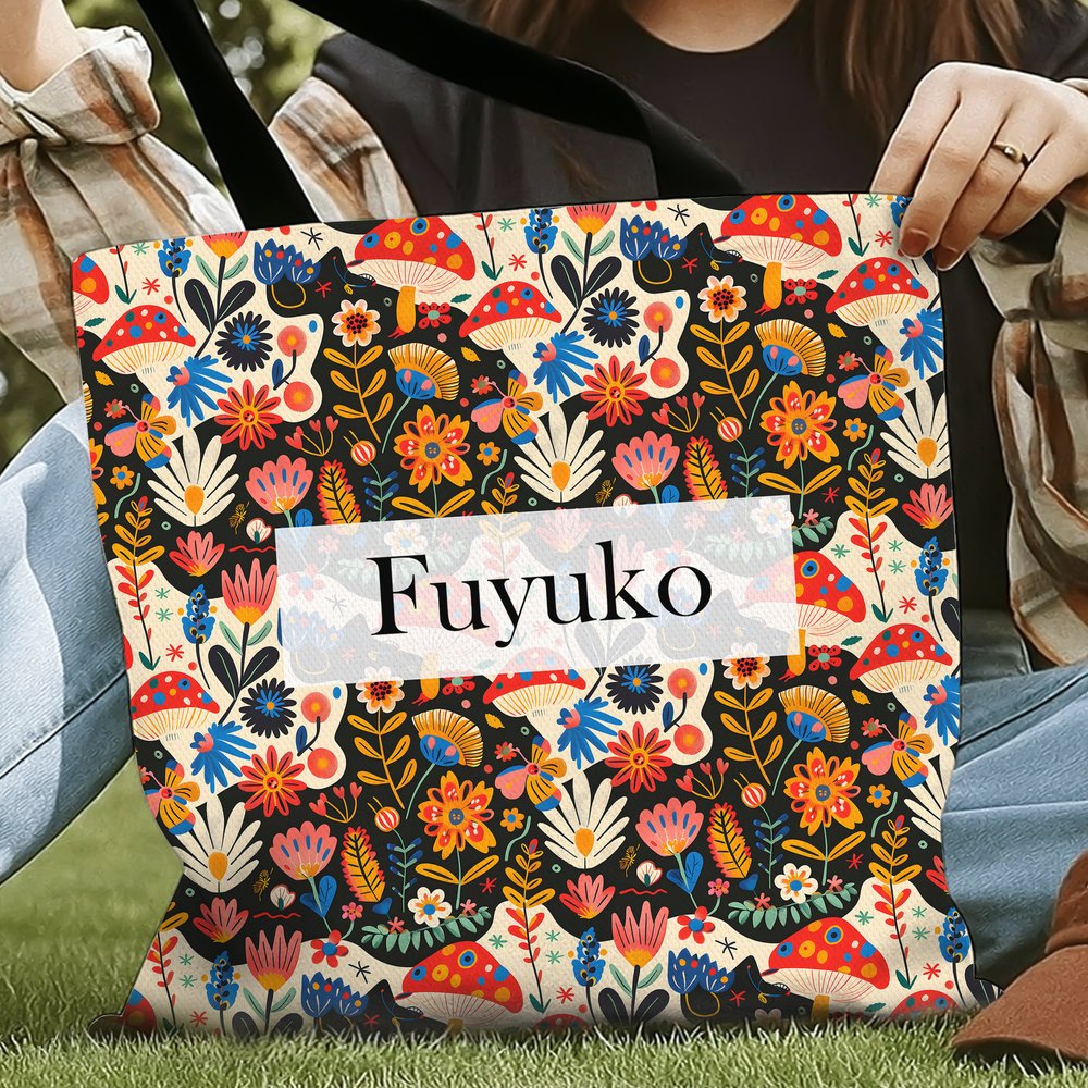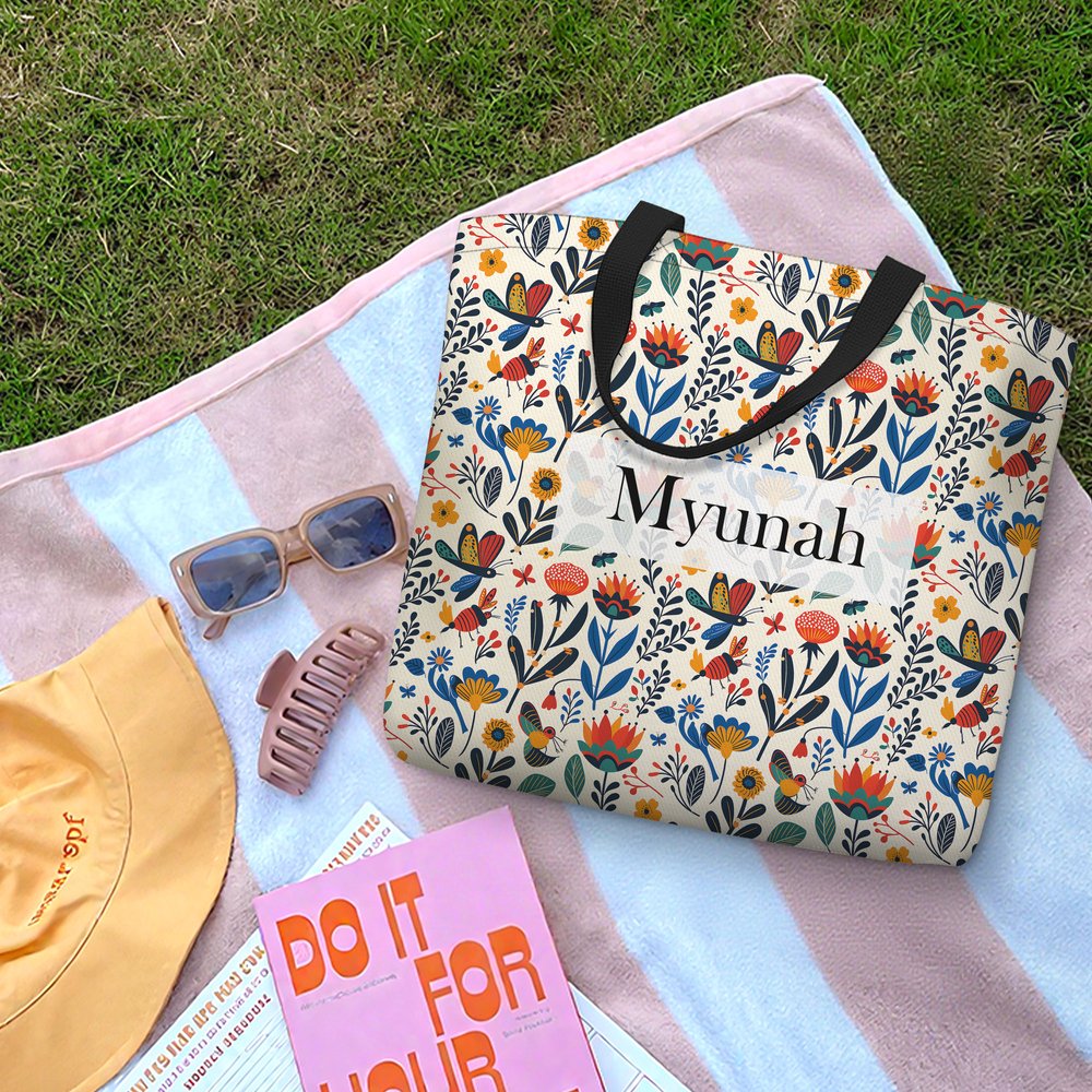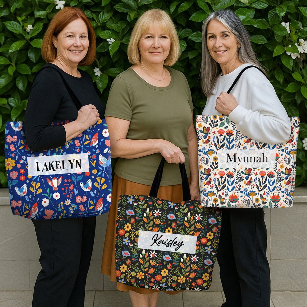 Personalized Folk Art Flower Large Tote Bag with Name Travel Daily Use Birthday Anniversary Gift for Women Friends