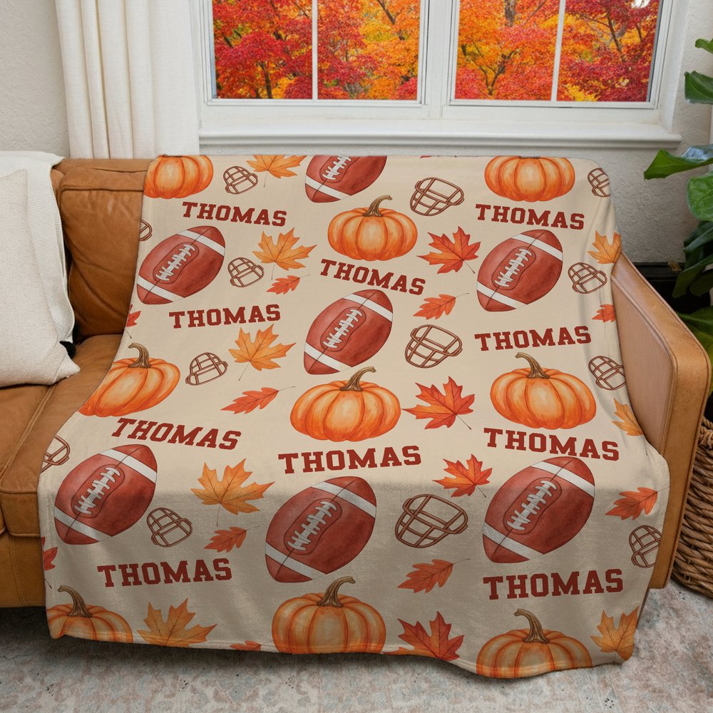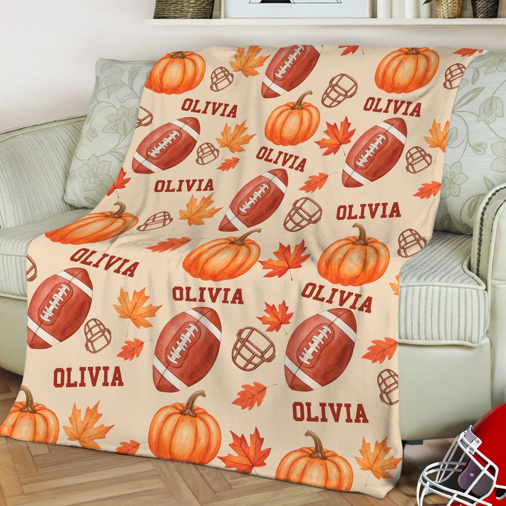 This soft blanket features vibrant football elements, specially designed for football enthusiasts. The rich pumpkin and maple leaf motifs blend the warmth and vitality of autumn, showcasing the charm of the harvest season. You can customize the blanket with a name, making each piece unique and creating a special emotional bond between you and your love for football, perfectly reflecting your individual style.