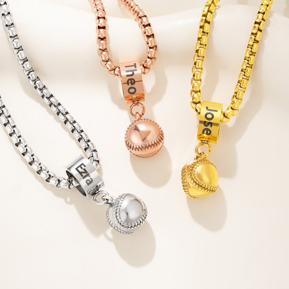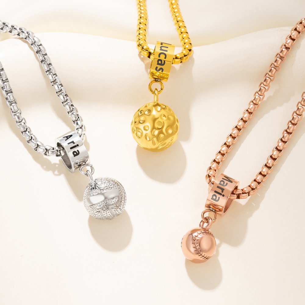 This necklace perfectly blends fiery passion with elegant aesthetics, creating a one-of-a-kind symbol for sports lovers. Inspired by 8 classic ball sports—baseball, volleyball, football, softball, basketball, golf, soccer, and badminton—you can freely choose your favorite ball design and pair it with a Personalized name, letting the spirit of sports shine brilliantly around your neck.