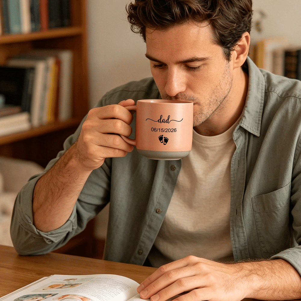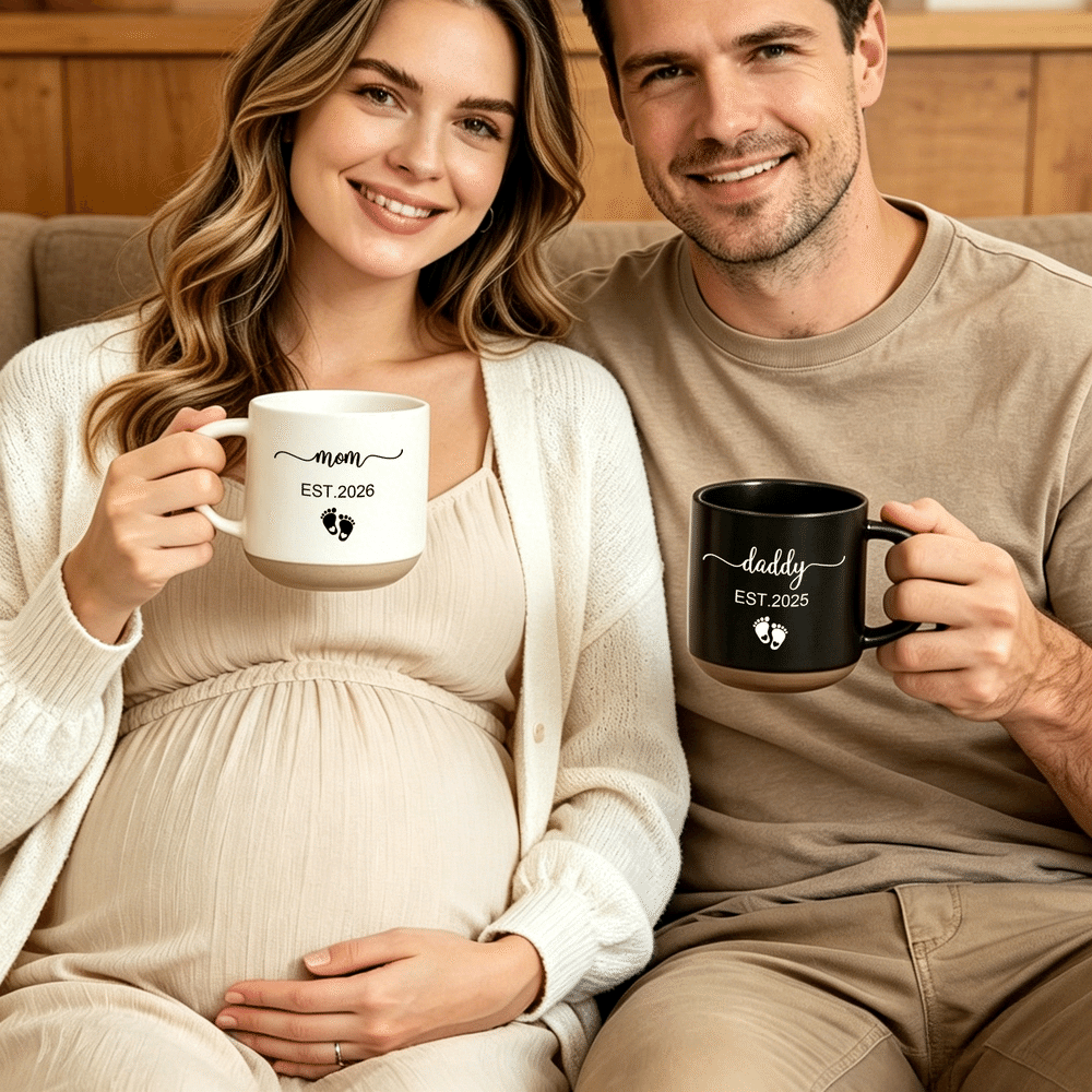 Perfect for home, office, and other everyday settings, ideal for morning drinks or afternoon tea. Customization options are readily visible, adding a touch of warmth and commemoration to every moment, accompanying new parents through their daily lives.