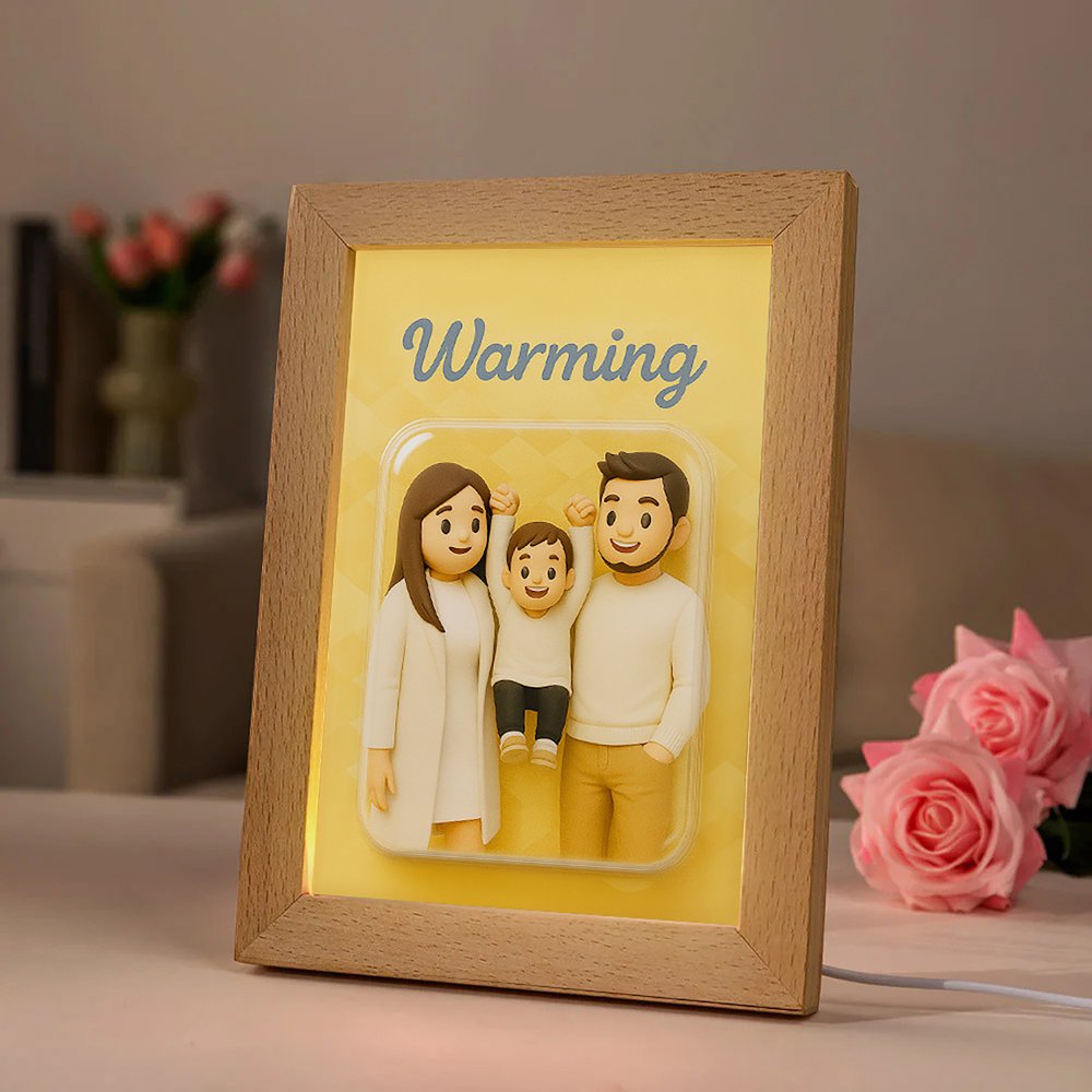 This custom acrylic luminous LED light ornament will open up a wonderful encounter between light and art for you. Just upload your favorite photos and enter your exclusive name or blessing. The designer will transform the technology into a cartoon-style flat printing 3D effect full of childlike fun, so that the static picture will jump out in the light and shadow.