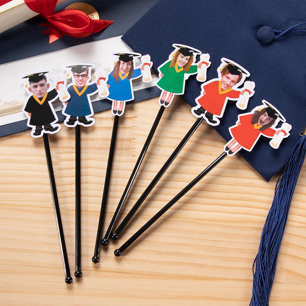 These custom photo graduation drink stirrers are the perfect addition to any graduation celebration, whether you're honoring high school, college, master's, or Ph.D. accomplishments. No matter the level of education, these personalized stirrers will inject endless fun and excitement into your graduation party, making it a truly unforgettable event for all in attendance.