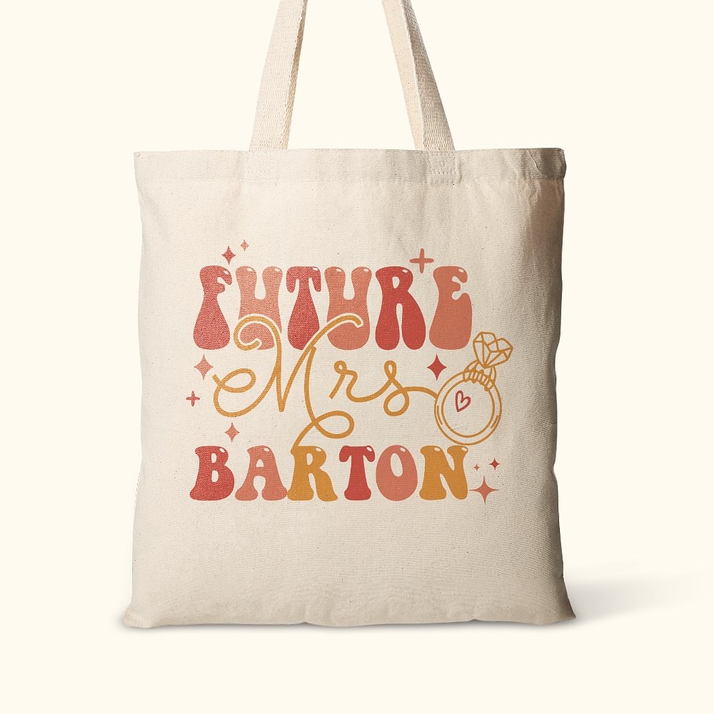 This Personalised canvas tote bag is the perfect gift to celebrate the bride-to-be's journey toward her special day. Featuring the "Future Mrs" design, it allows the recipient to proudly showcase her engagement status. Personalise this tote bag with the recipient's name to make it a truly unique and meaningful gift.