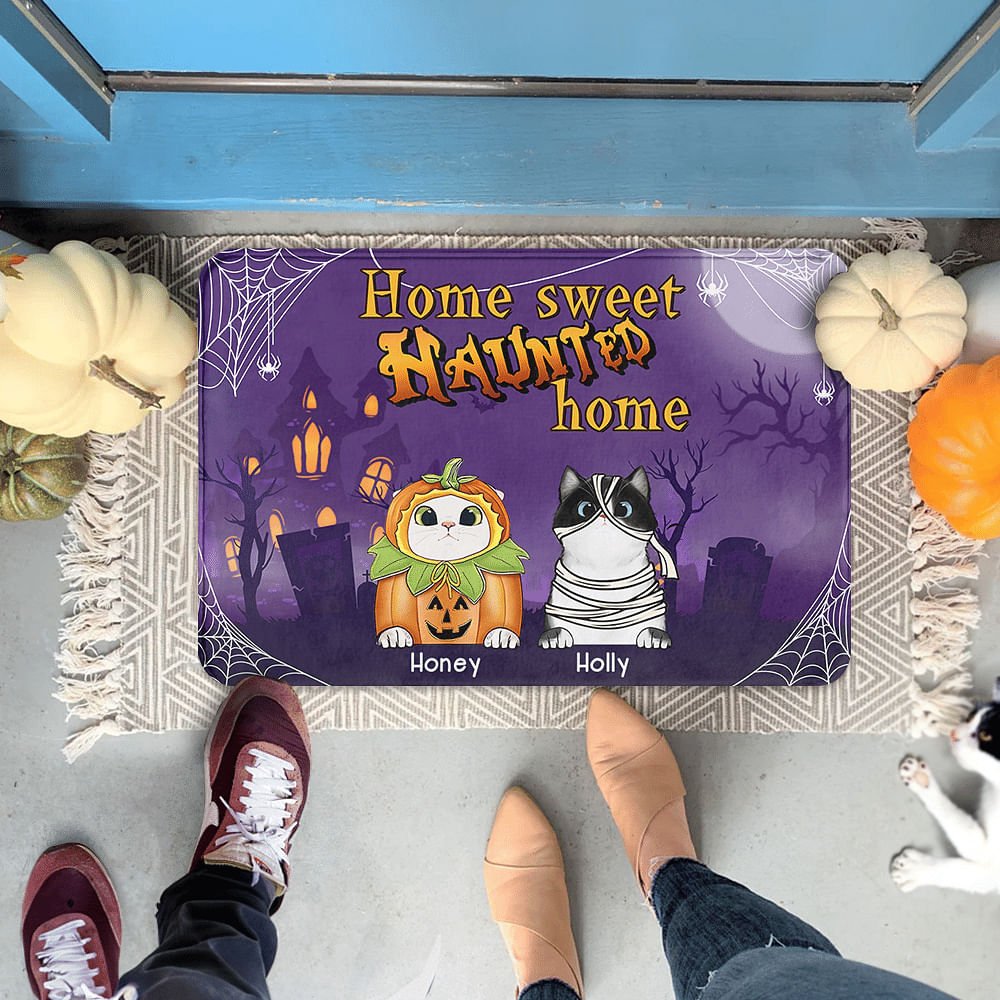 The design of this door mat is inspired by classic Halloween elements and cleverly incorporates the role-playing image of a cute cat. You can choose from one to five cat patterns, each dressed in a unique Halloween costume, whether pumpkin, mummy, demon, or witch, to create a mysterious yet warm holiday atmosphere. You can also customize the name and title to create your special decorations.