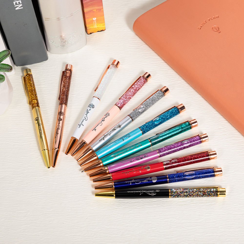 | Feature: | Quicksand Pen, with Engraved Name and Birth Flower |