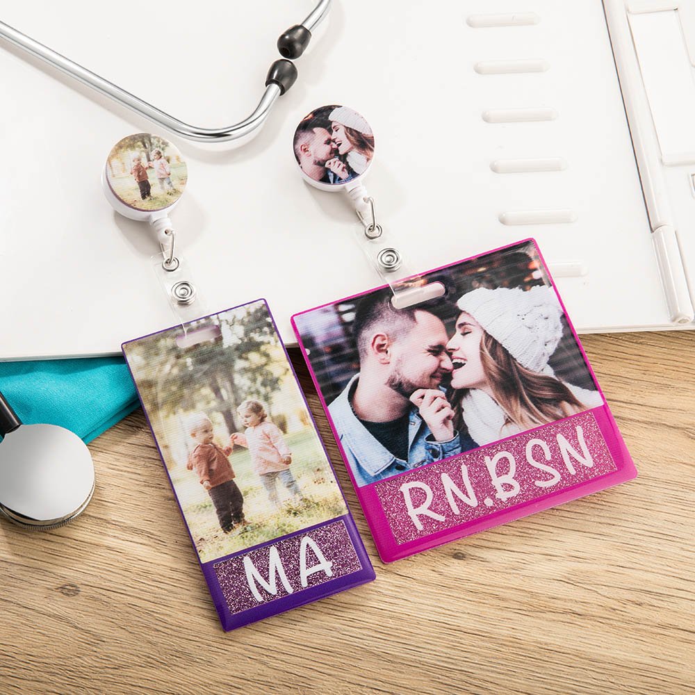 This is a 1/8" thick glitter acrylic badge reel that won't bend and is the perfect complement to your work badge. A fun way to display your department or credentials in your workplace, the badge buddy allows people to identify your role at work at a glance.