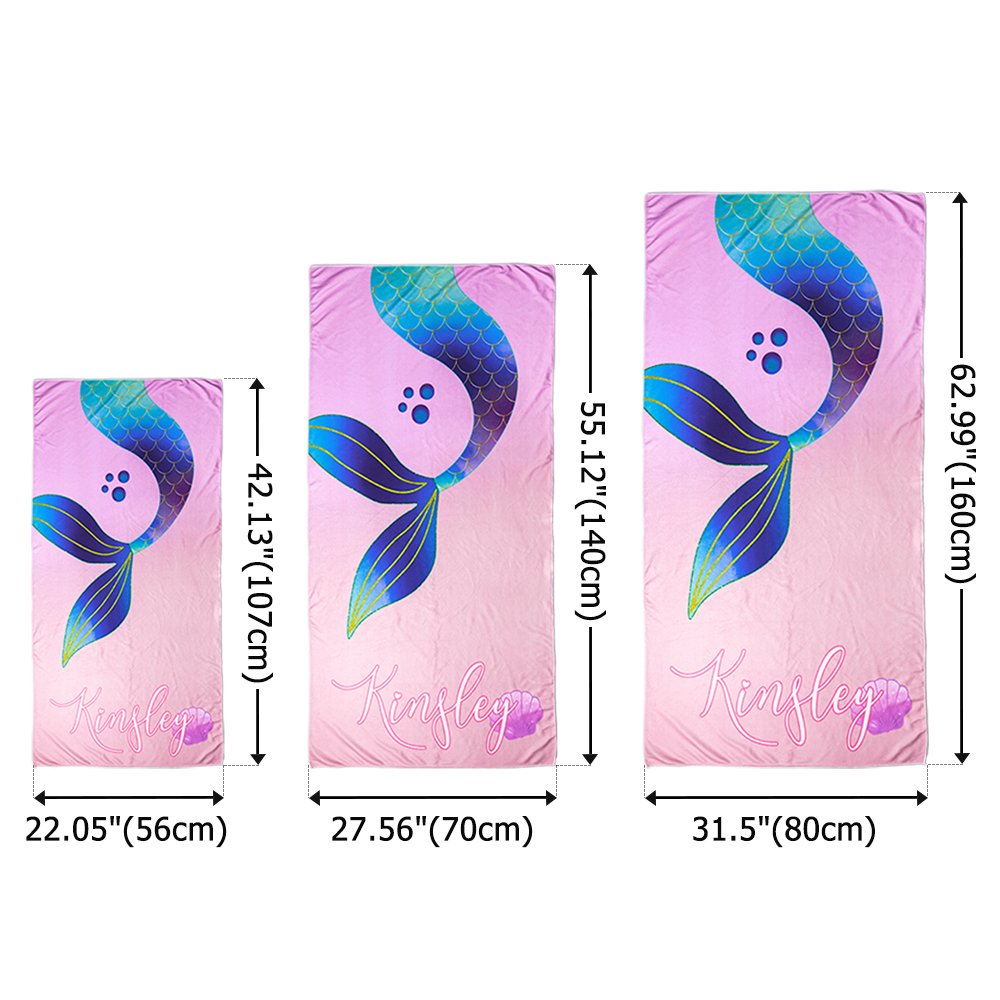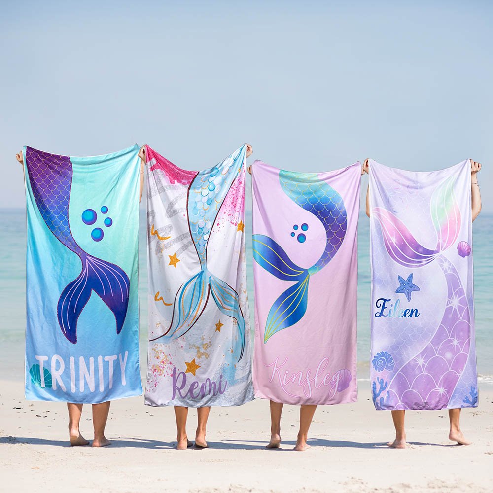 The design of this beach towel is based on colourful fantasy mermaid elements. The glittering fishtail is playful, fashionable, and eye-catching. You can also customize your name on it to create a must-have item for summer.