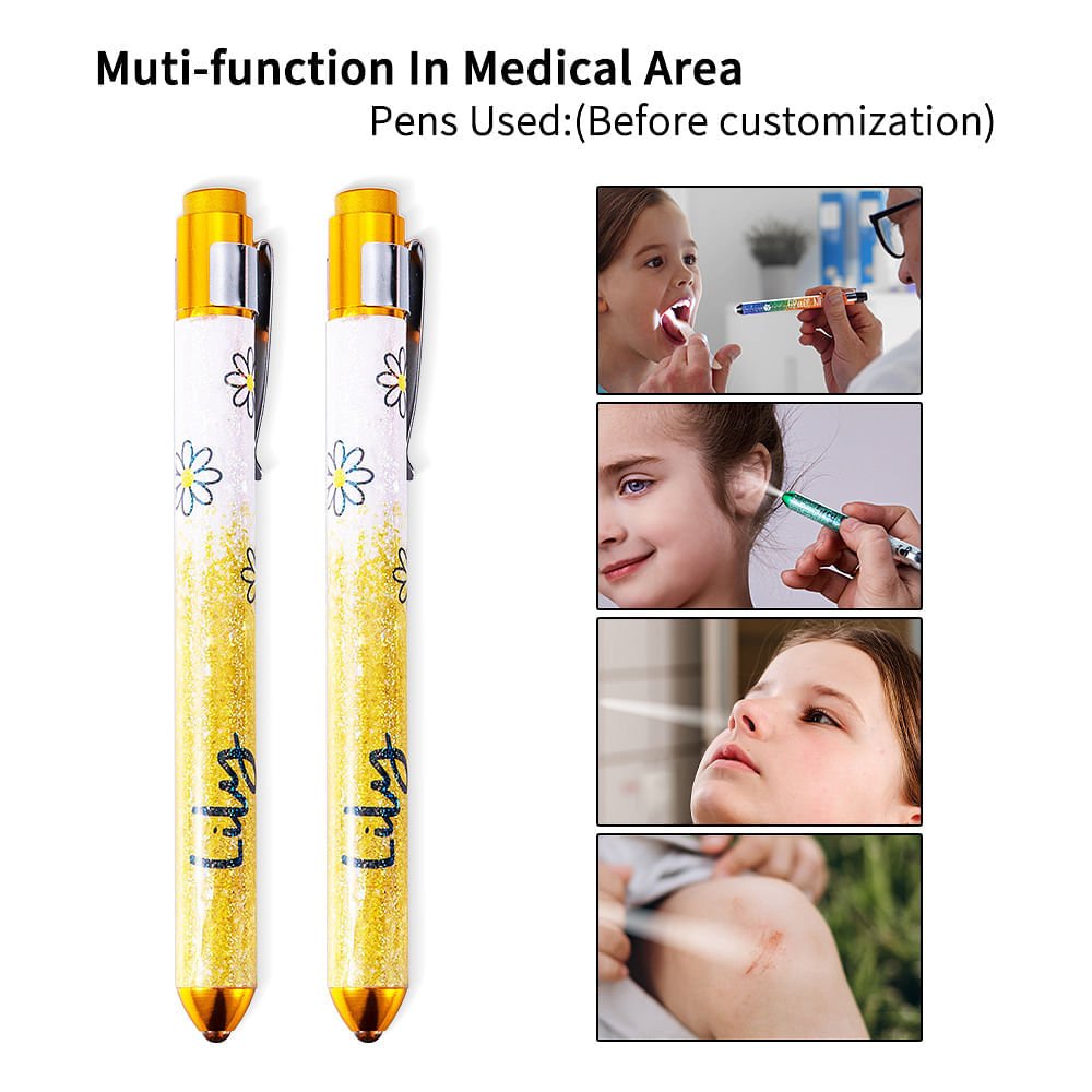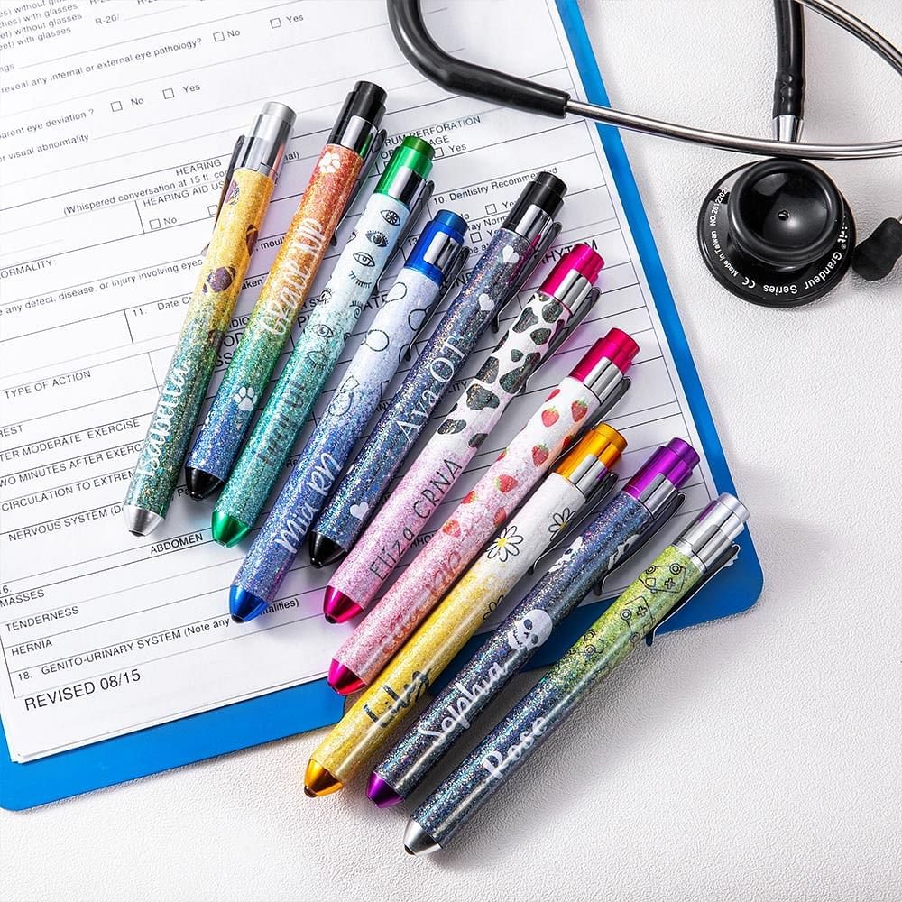 This Personalized LED pen light features a glittery, eye-catching design with various medical-themed options, including nurses, doctors, and veterinarians. The ability to customize it with the recipient's name and title adds a unique, personal touch.
