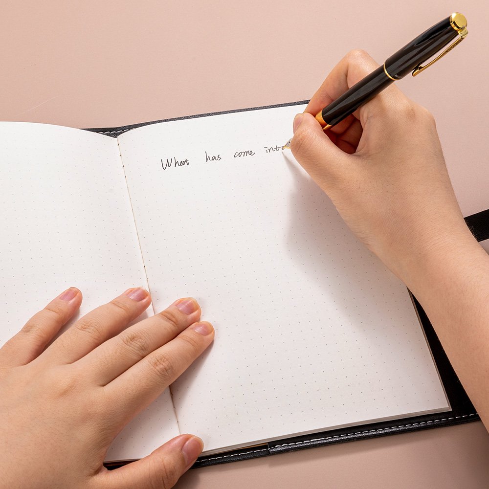 The PU leather fabric used in the notebook is soft, wear-resistant, and durable. The internal fixed notebook paper has excellent texture, and smooth writing, and is not easy to penetrate. The overall workmanship is fine and the stitching is even, reflecting the high-quality production process. The notebook is also equipped with a pen slot and card pockets, which can store pens, notes, and other small items in an orderly manner so that important information is within easy reach.