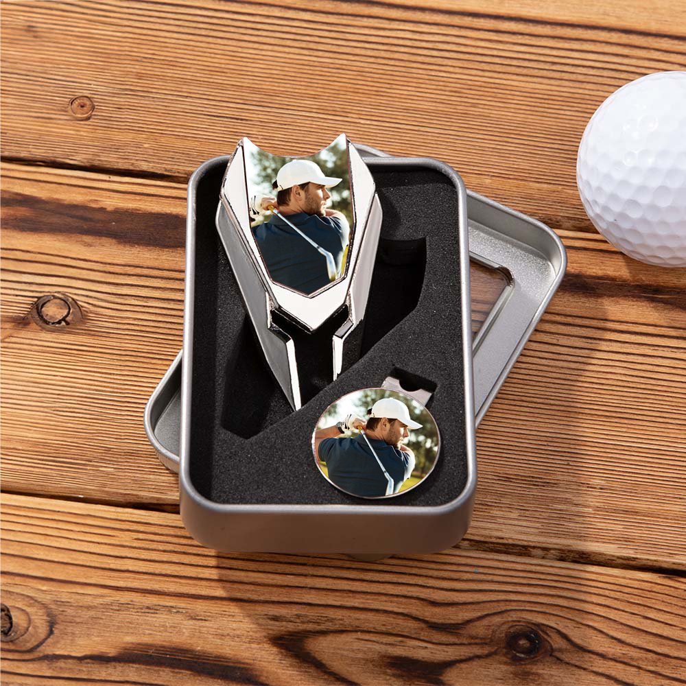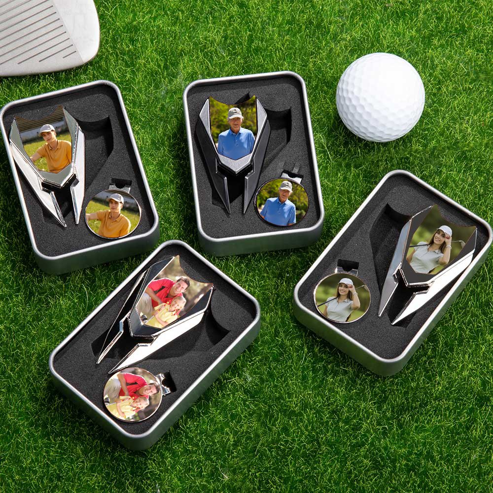 This stylish and practical set comes with a divot repair tool to ensure your greens stay in tip-top shape or as a club holder and a magnetic hat clip to accessorize your hat or hold your ball marker, a true fusion of sport and fashion. You can customize it with your favorite photos, making it a unique addition to your golf equipment.