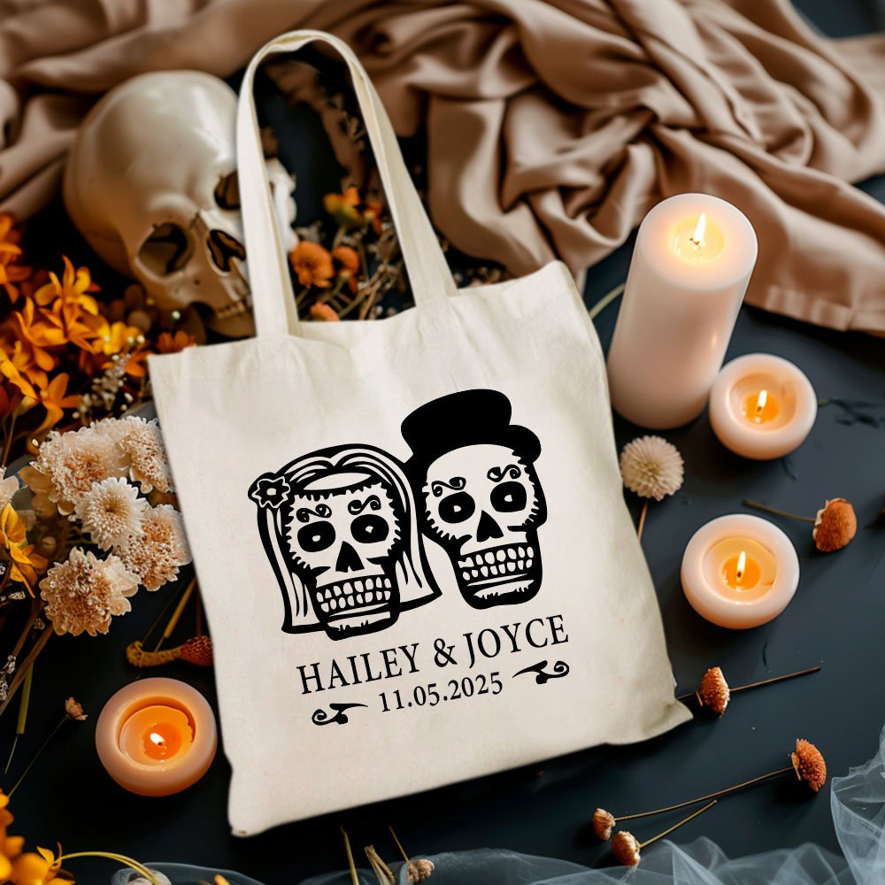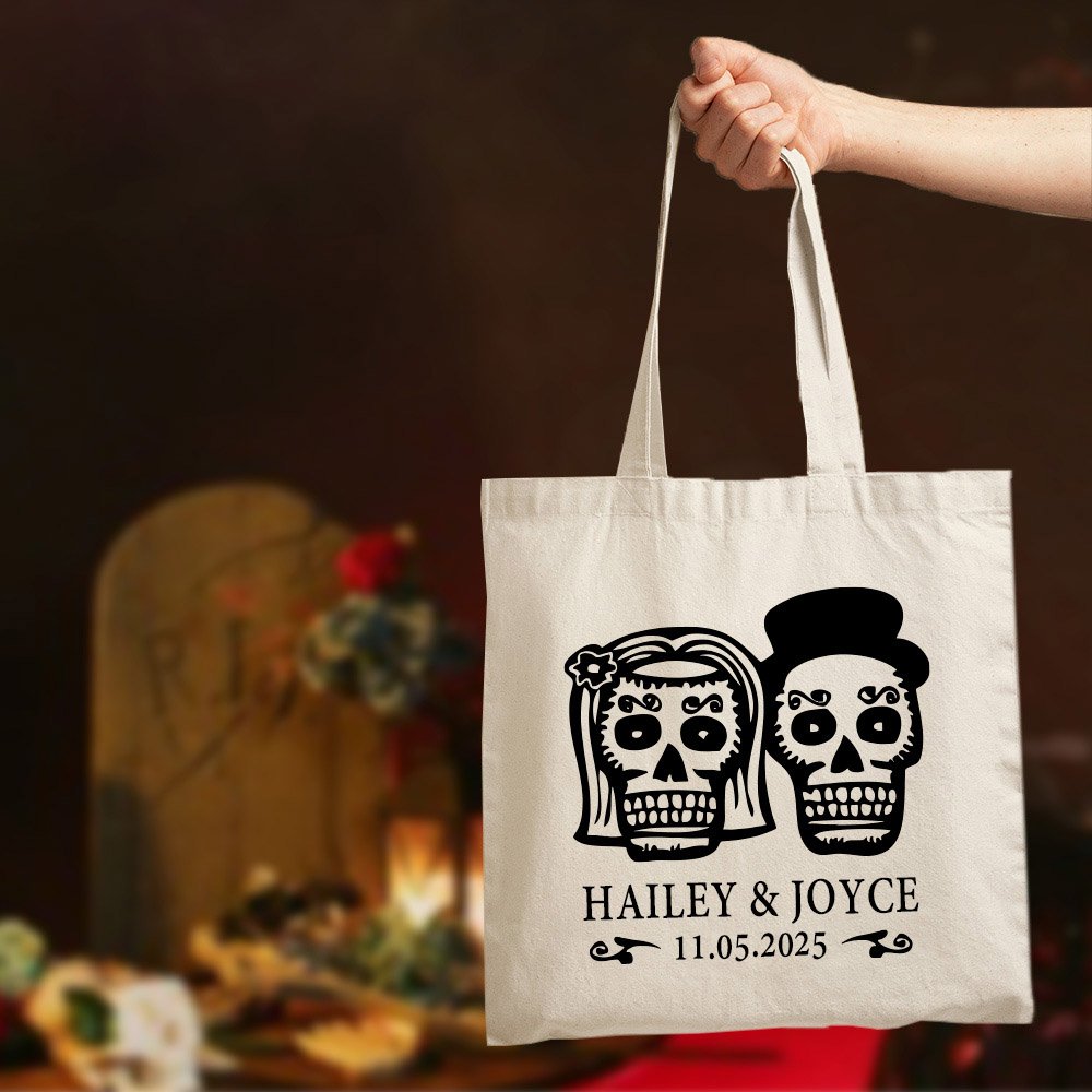 Ideal for Day of the Dead celebrations, Halloween, or as a unique wedding gift, this Personalized tote bag is a thoughtful and meaningful present for newlyweds or couples. It’s a wonderful way to celebrate their love while honoring cultural traditions and creating lasting memories.
