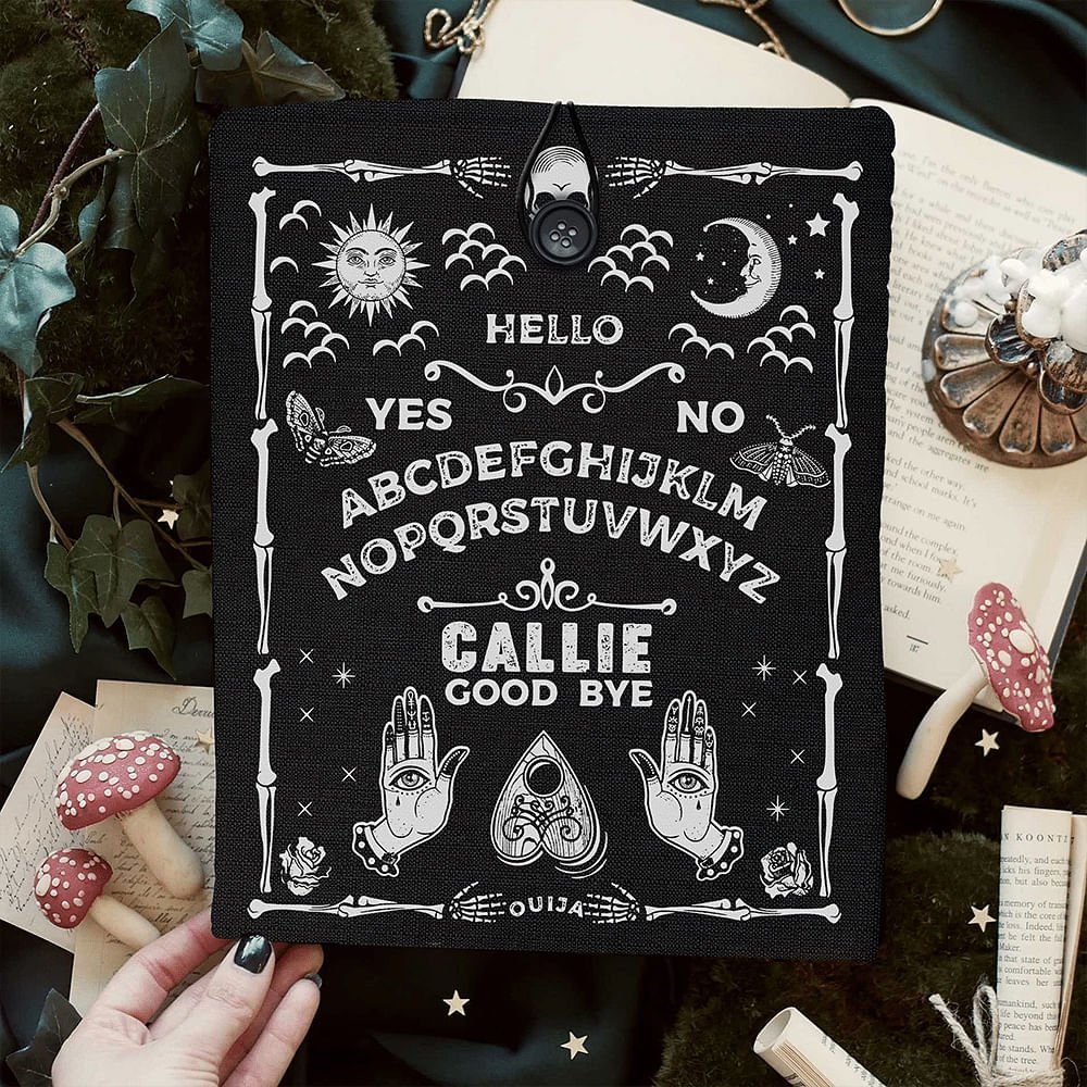 Get ready to embrace the spookiness! This book sleeve is the ideal gift for birthdays or Halloween. The dark and macabre aesthetic is perfect for adding a touch of the supernatural to your reading experience. Whether it's for a friend obsessed with Ouija boards or a fellow bookworm looking for something unique, this Personalized book sleeve will surely impress.