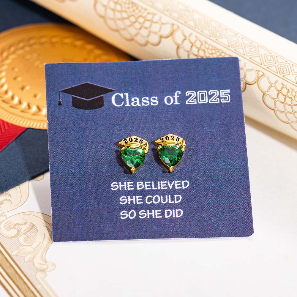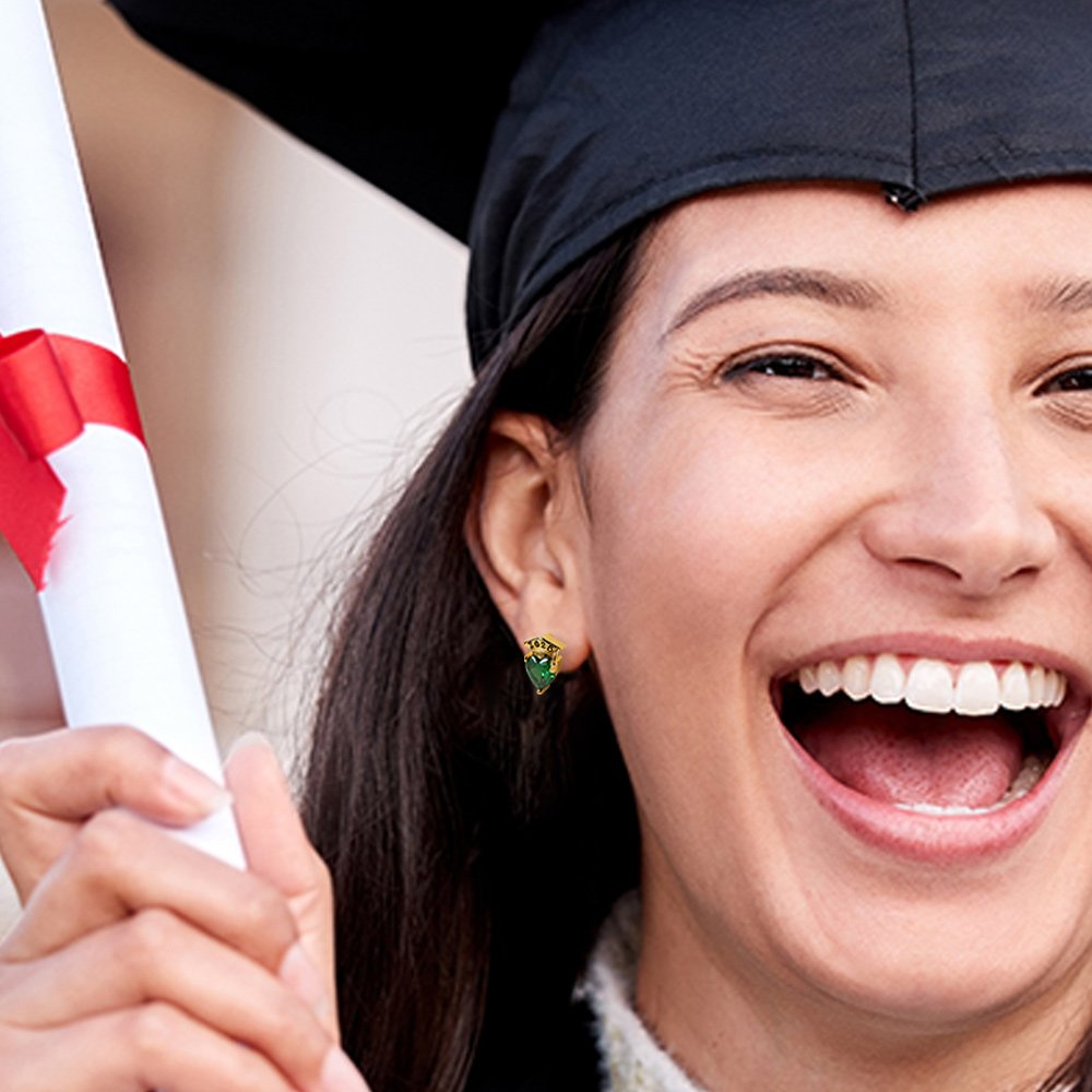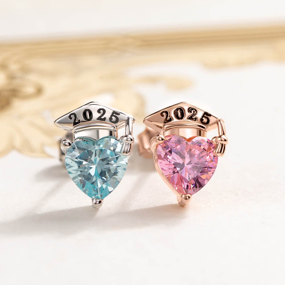 Personalise the earrings by choosing a birthstone corresponding to the wearer's birth month. With a charming graduation cap design, these earrings can also be customized with the graduation year. This thoughtful detail makes them a meaningful gift that beautifully reflects the wearer's individuality.