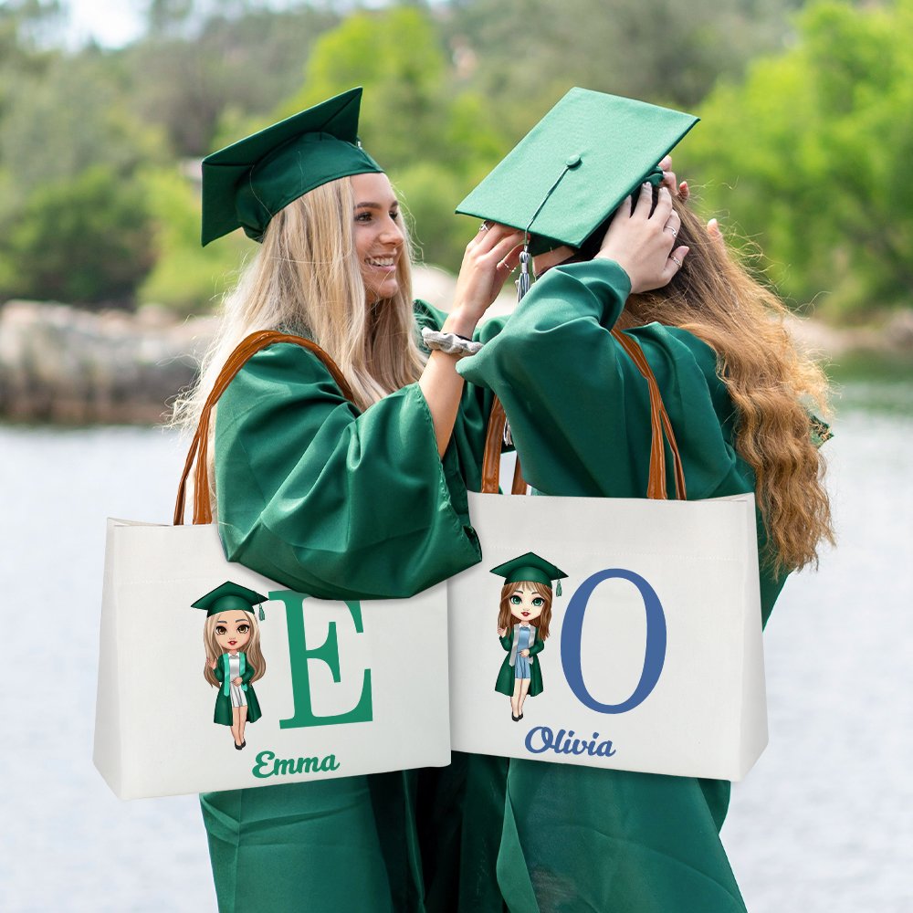 This handbag is themed with cute graduation cartoon characters. You can customize your graduation girl character cartoon image with a unique design. At the same time, you can also customize your initials and name, making it a unique and meaningful accessory that highlights your personality.