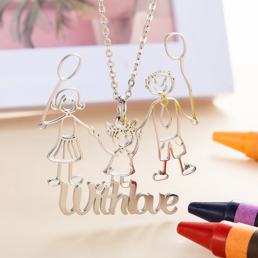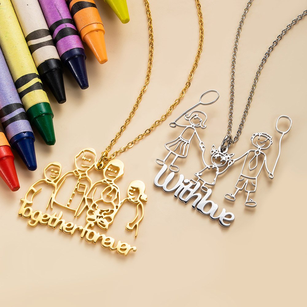 Any name, children's paintings, children's graffiti, cuts, etc. can be customized according to this necklace and different chain lengths. Create a fun children's personality necklace for friends and mothers, a grandma gift.